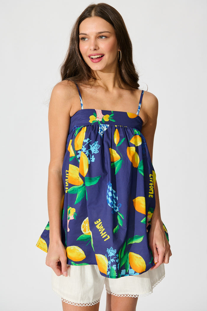 Lemon Zest Top in Navy with Lemon Print Cotton