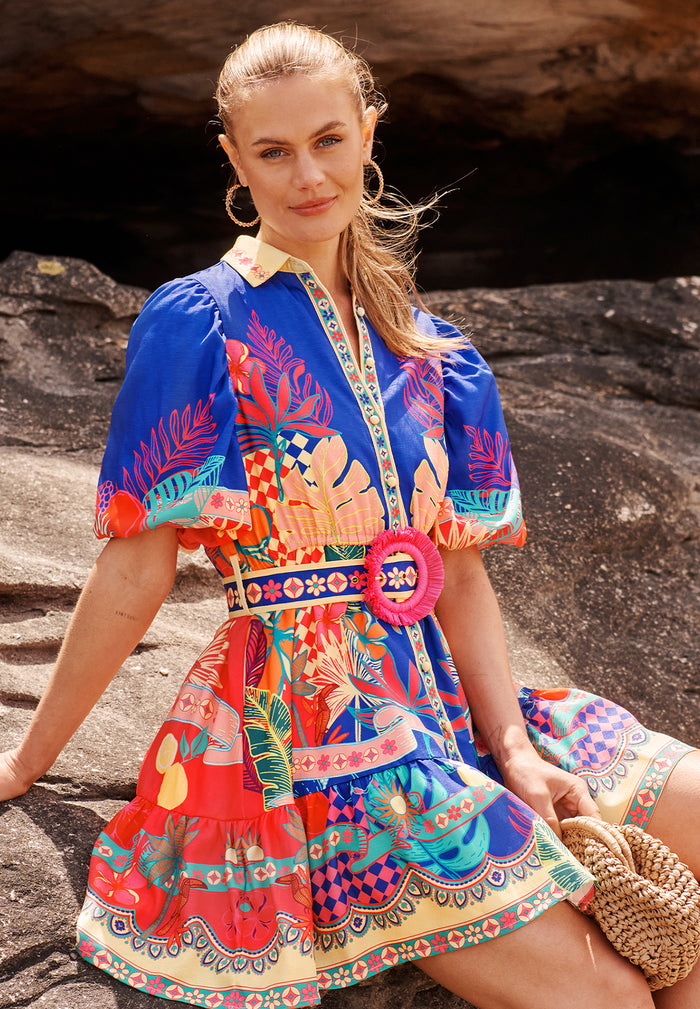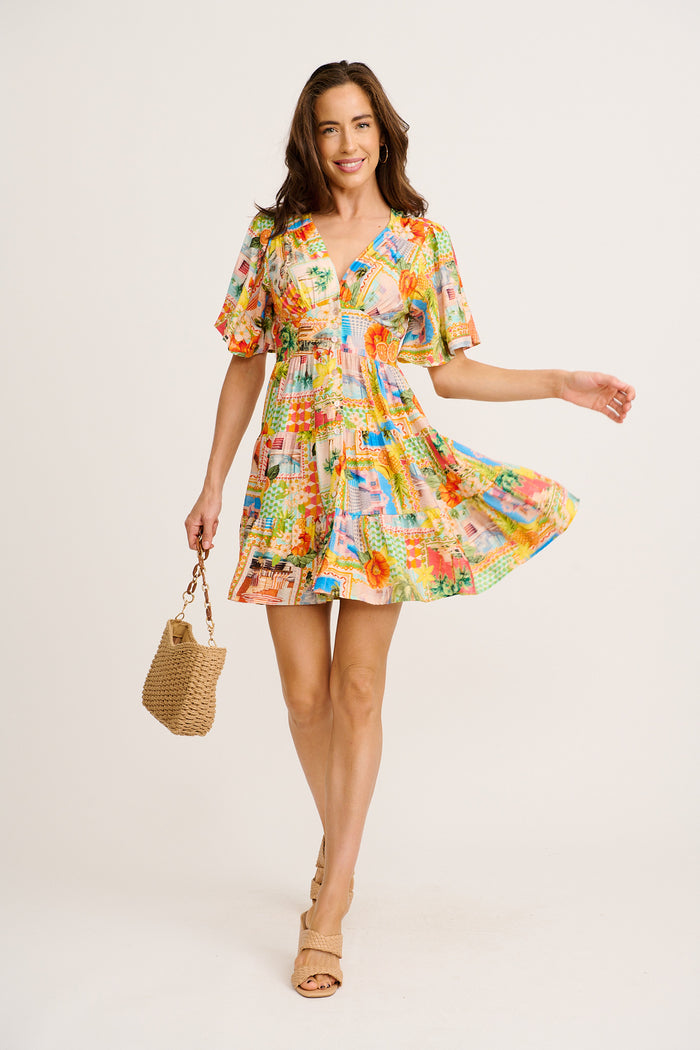 Seaside Vibe Dress in Multi Postcard Print
