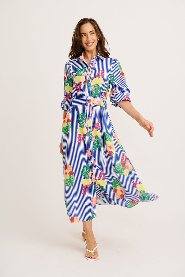 Harlyn Maxi Shirt Dress in Navy Multi Tropical Linen Blend