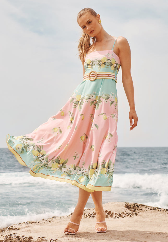 Lova Maxi Sundress in Navy with Lemon Print Cotton