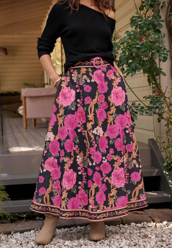 Reanna Midi Shirt Dress in Plum with Pink Leaf Print