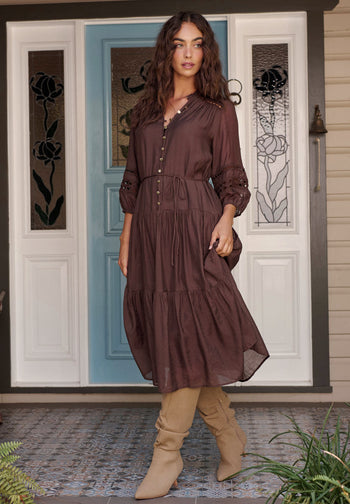 Kylana Dress in Chocolate Cotton