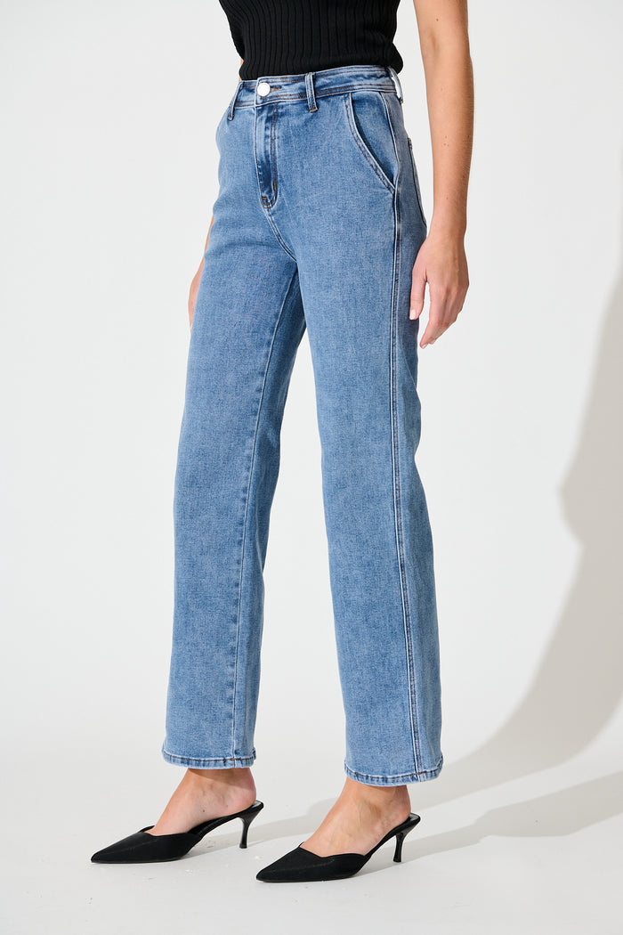 Adele High Rise Straight Leg Jean in Mid Blue