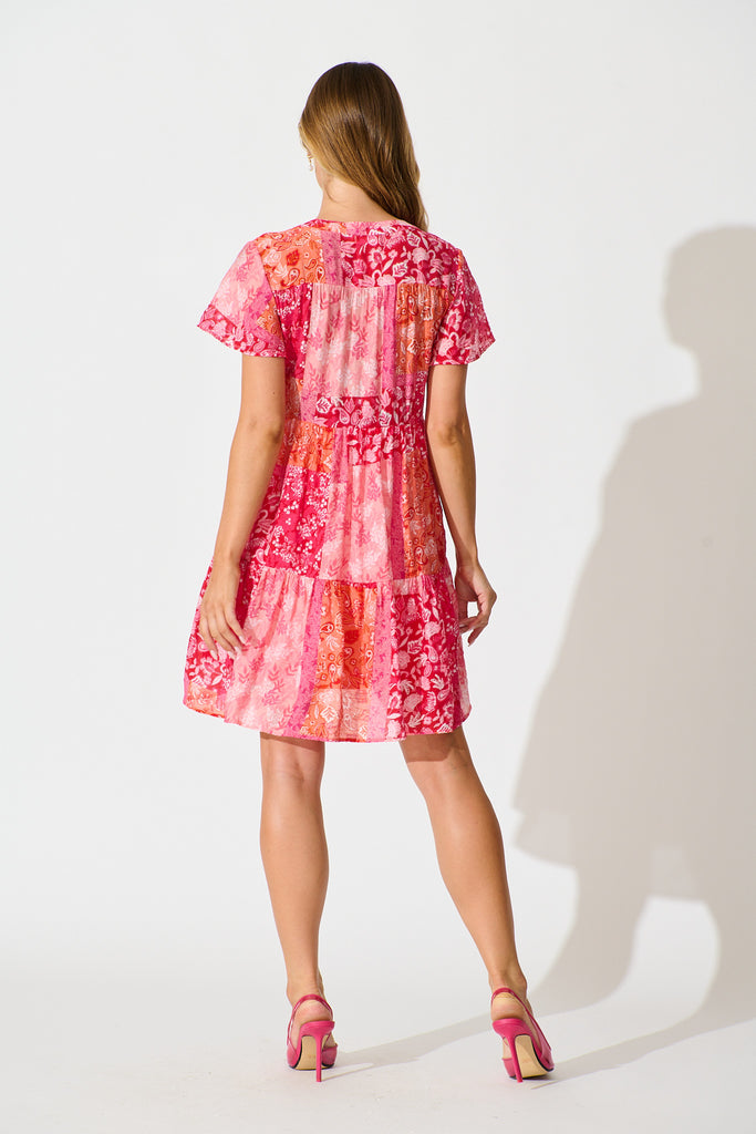 Adeline Shirt Dress in Multi Pink Patchwork
