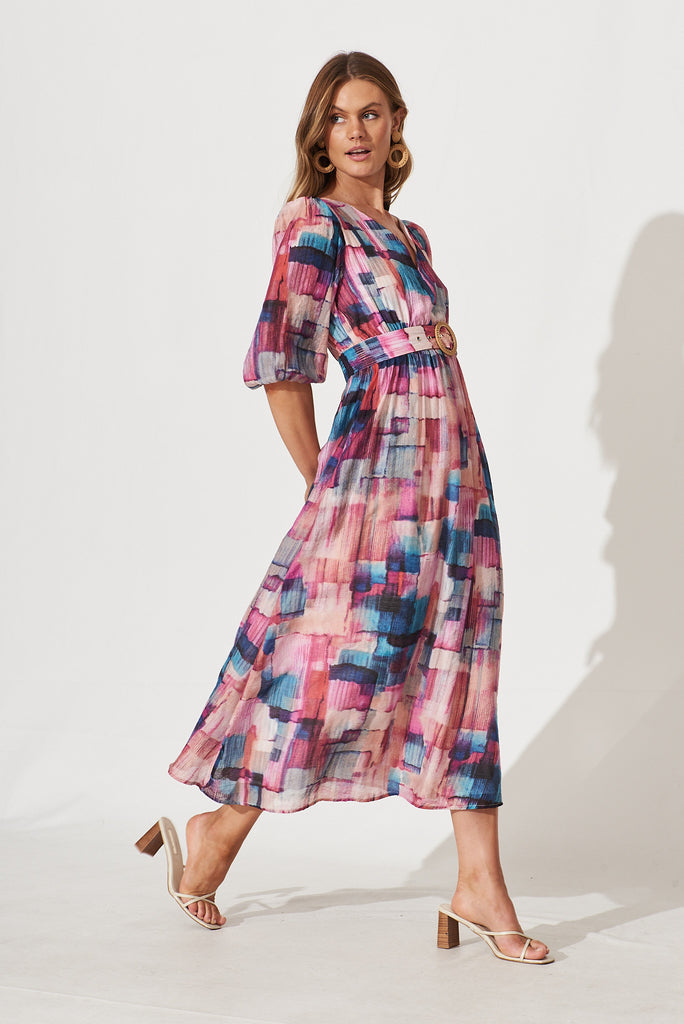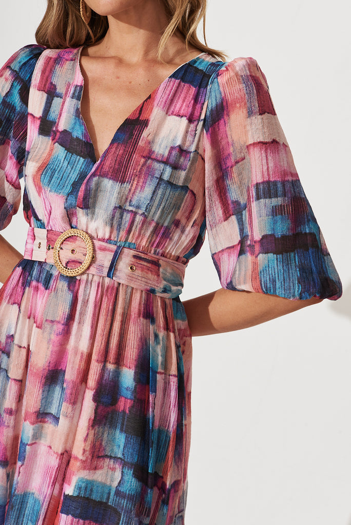 Adrina Maxi Dress In Purple With Blue Multi Print