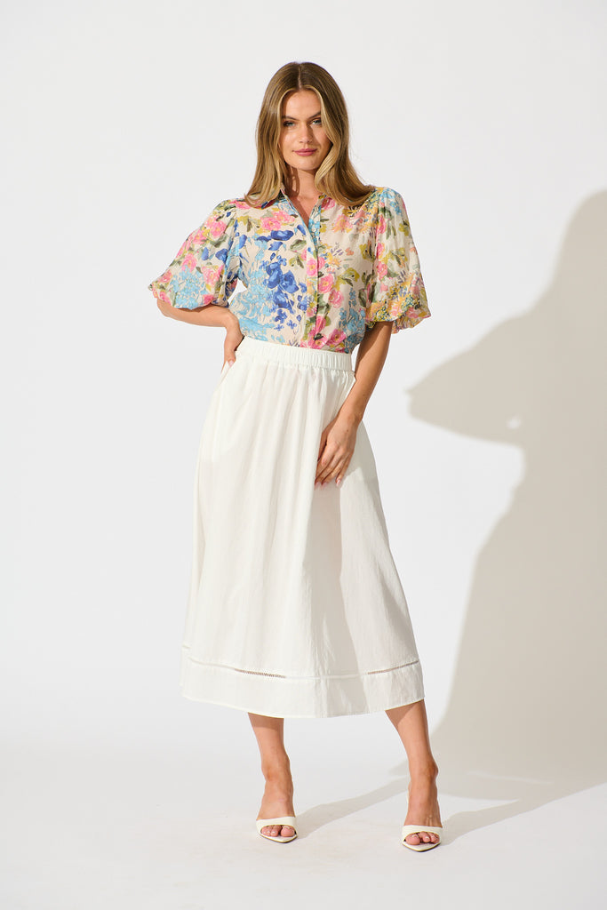 Our Aeryn Shirt is all about effortless sophistication. It perfectly gives off a luxurious kind of ease thanks to the texture, balloon sleeves, & gold button detailing. It's the perfect piece that your closet is practically begging for! Style it with denim & mules for the ultimate ensemble.