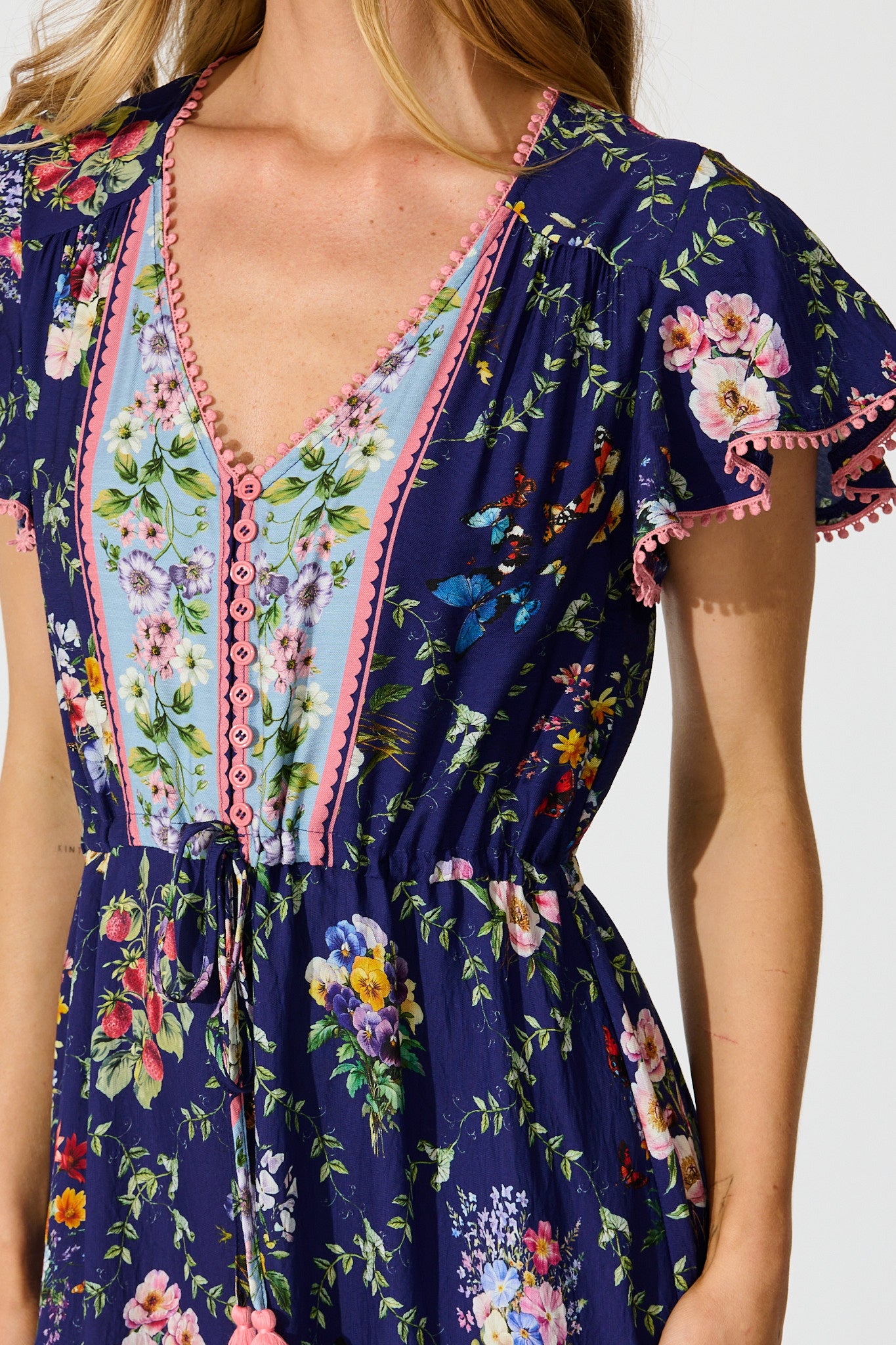 Alice Maxi Dress in Navy with Multi Floral Boho Print