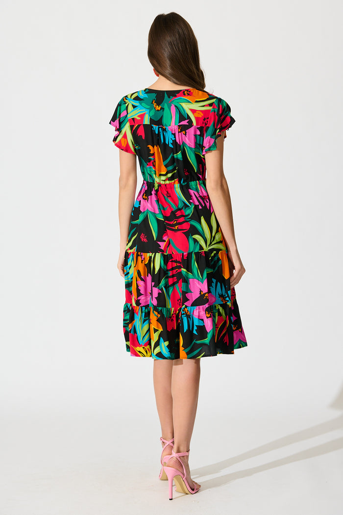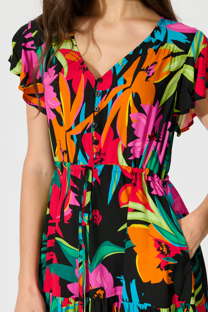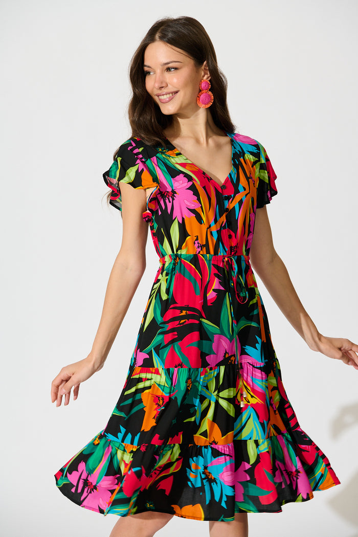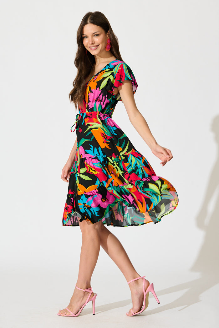 Allyza Dress in Black Multi Floral