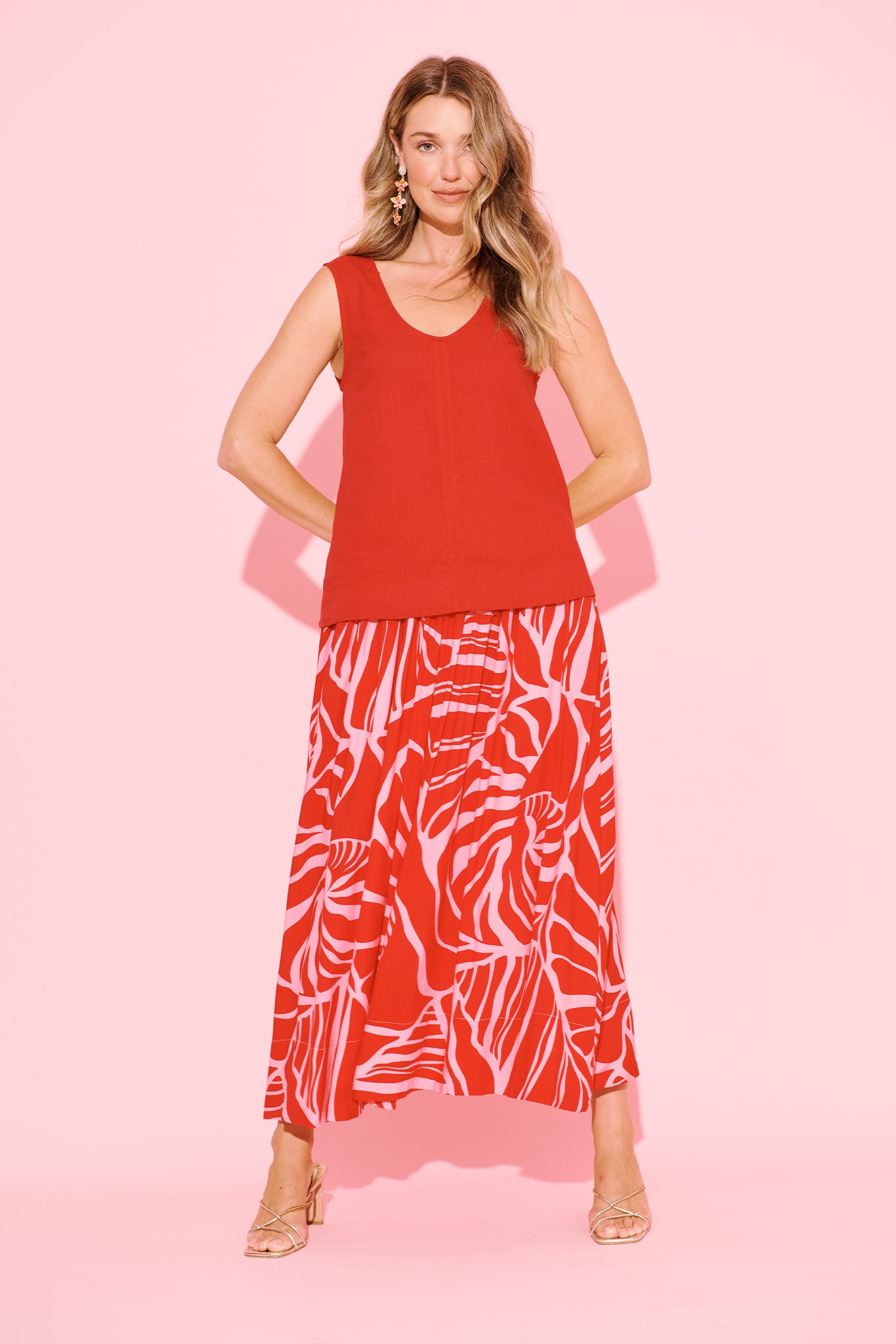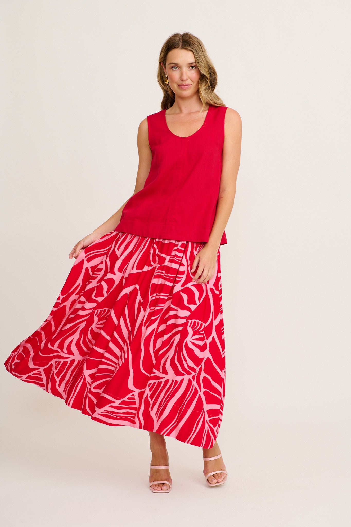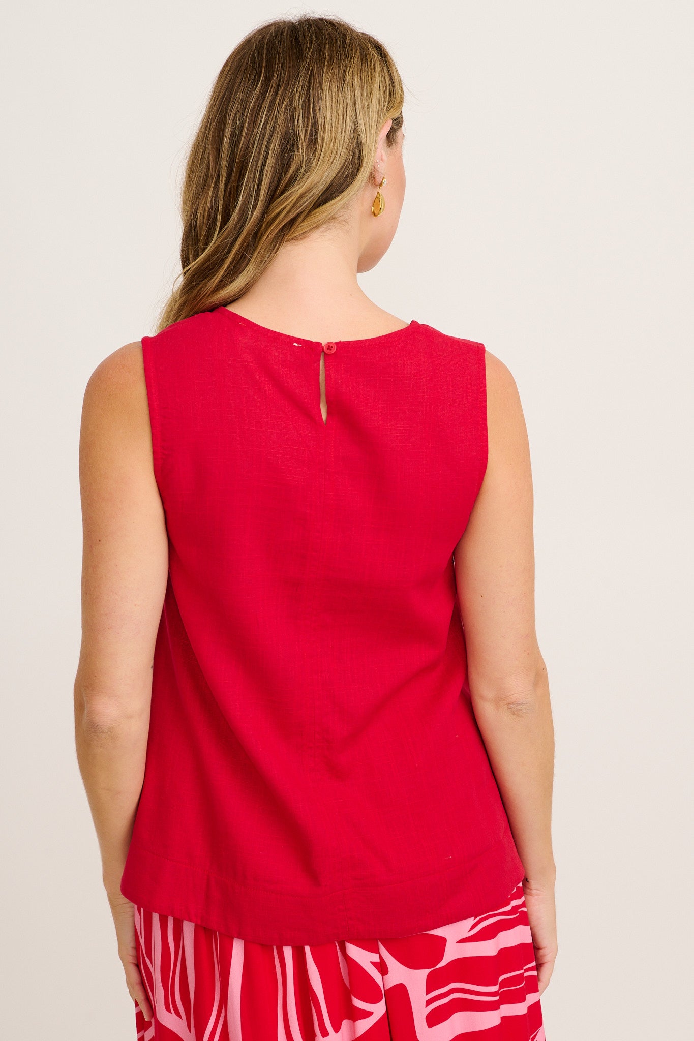 Chic, simple and endlessly wearable – the Alula Top in Red Linen Blend is your new warm-weather favourite. With its clean lines and breathable fabric, this sleeveless top is perfect for relaxed days, resort escapes and casual catch-ups.