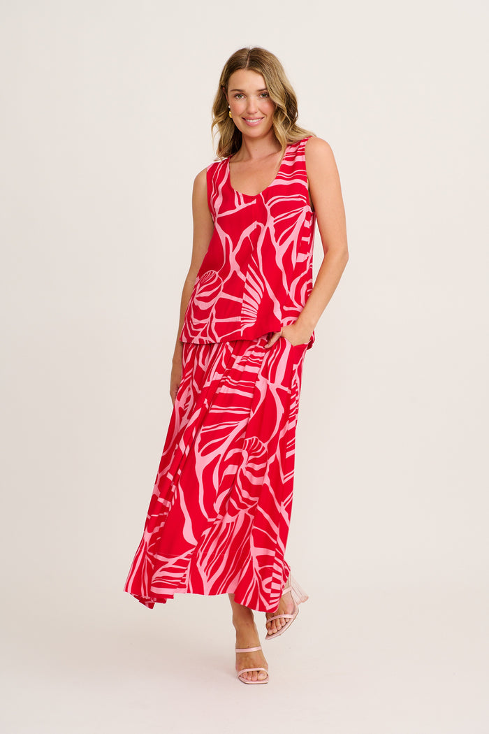 Set: Alula Top & Julianna Maxi Skirt Red with Pink Print