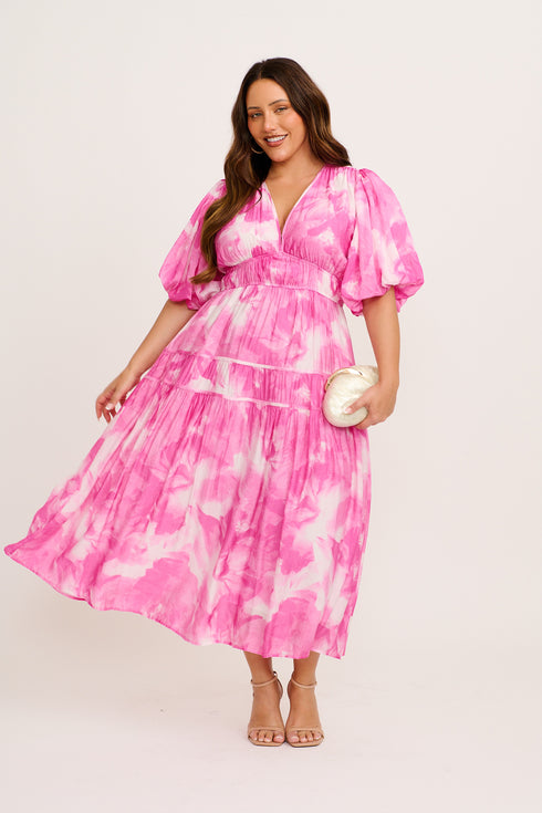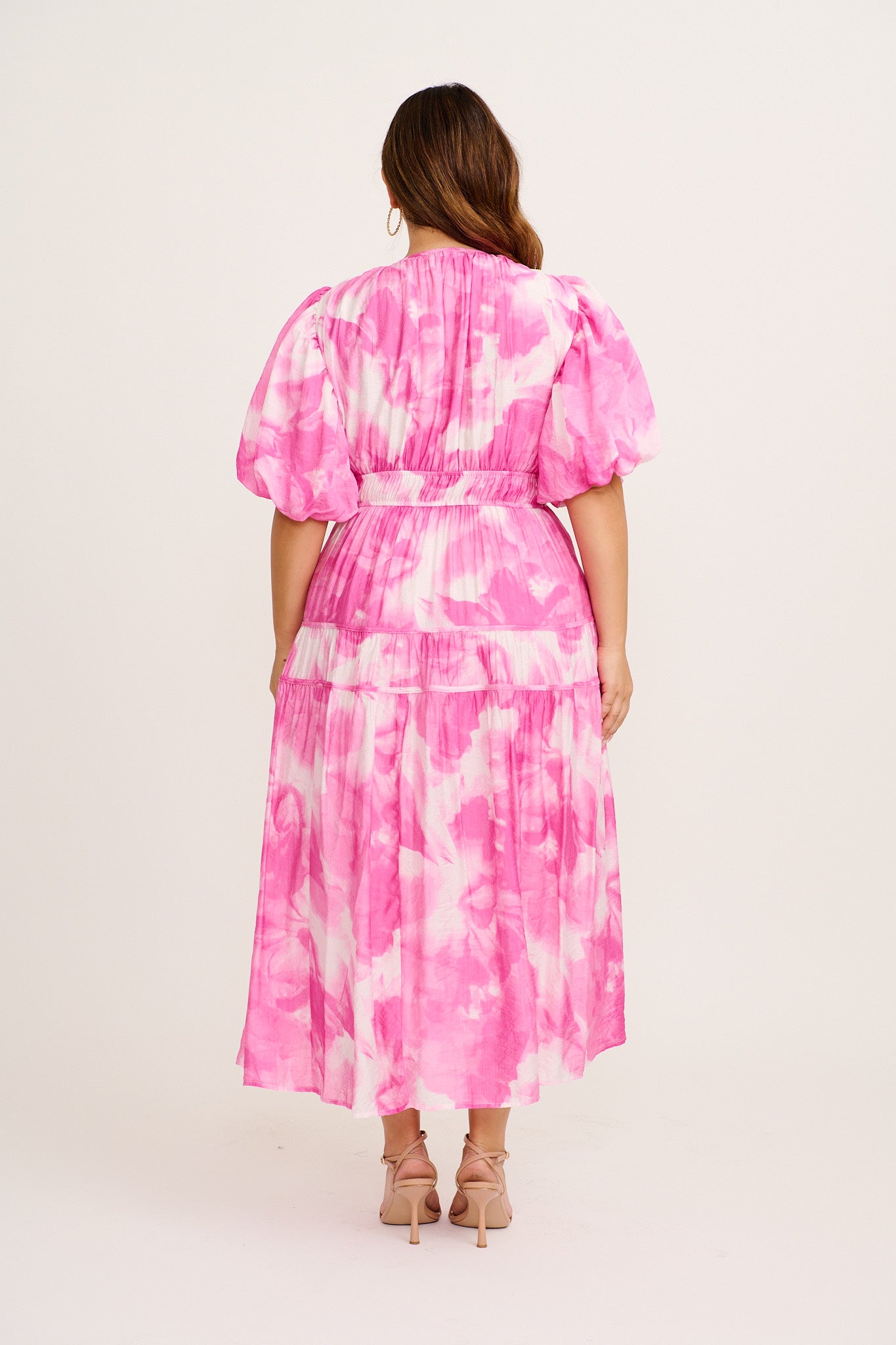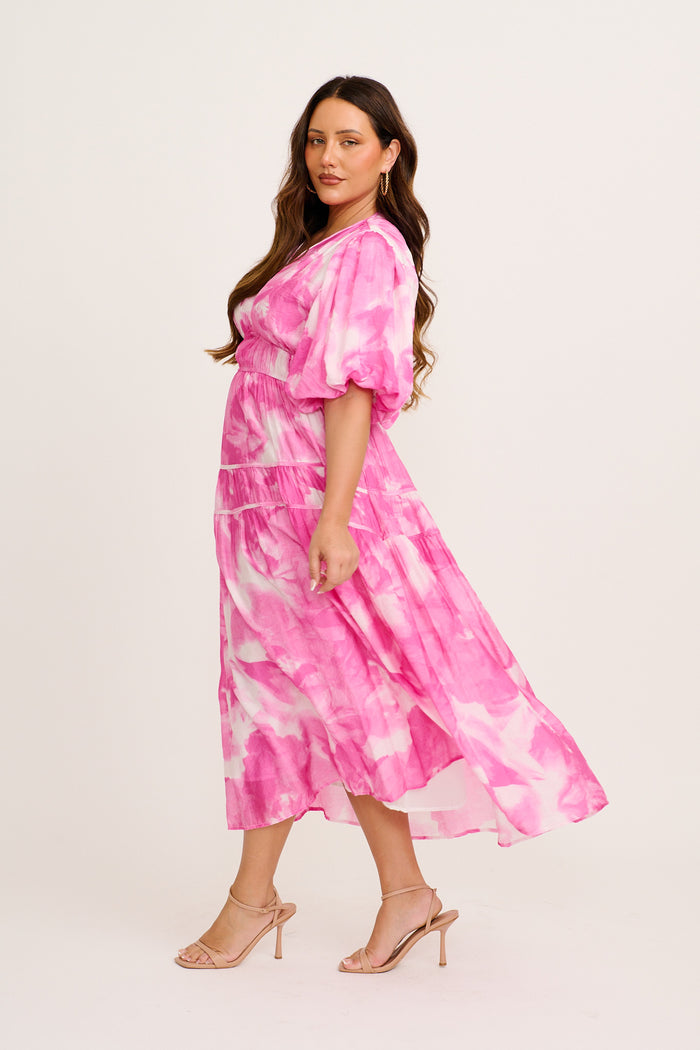 Soft, dreamy and effortlessly feminine, the Amalie Midi Dress in Pink with White Watercolour Print brings fresh energy to your wardrobe. With its delicate hues and flattering silhouette, it’s an ideal choice for brunch dates, parties or evening plans that call for timeless style.