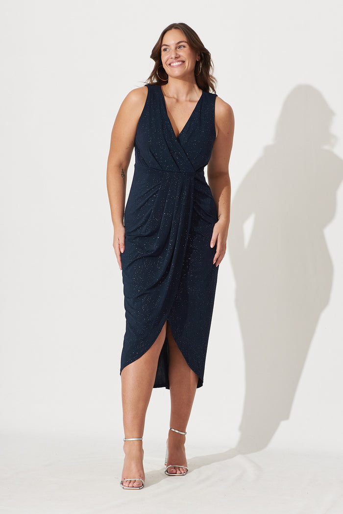 Amanda Midi Dress In Navy Glitter