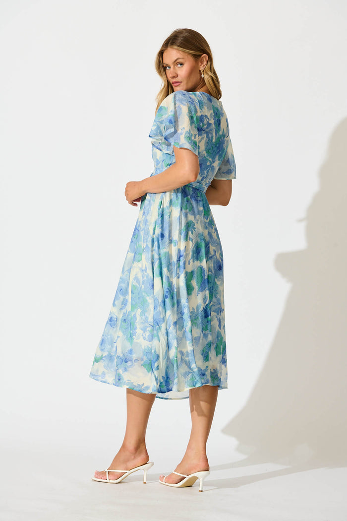 Turn heads and embrace effortless elegance with our Amara Midi Dress, a perfect blend of vibrant blooms and timeless style! Featuring lined top of body, mock wrap V-neck and self waist tie. Style with strappy heels, statement earrings and a cute matching clutch to get a chic look!