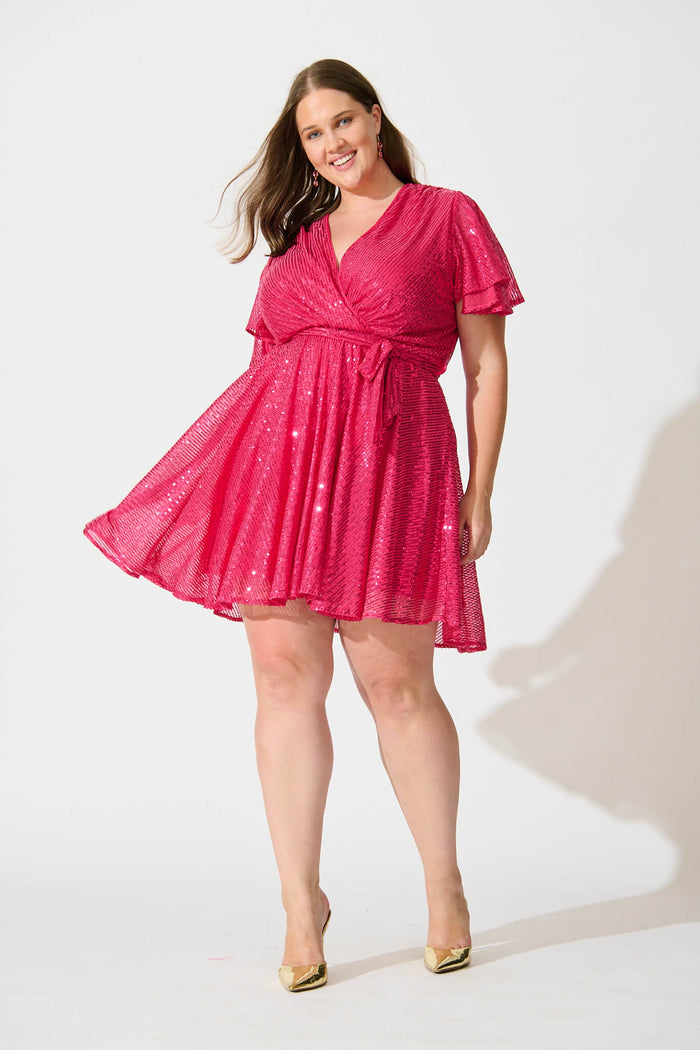 Amoretto Dress In Hot Pink Sequin