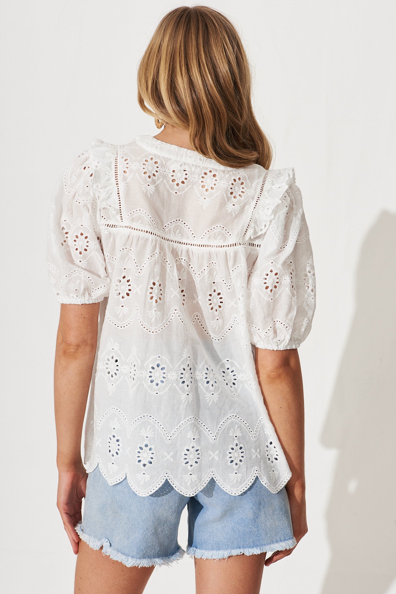 Keep it chic and sweet in our Angelina Shirt! Featuring a gorgeous statement sleeve and made from a beautiful broderie cotton. It's simple yet elevated & we're here for it! Wear it with your favourite denim jeans, mules for a casual chic day look!