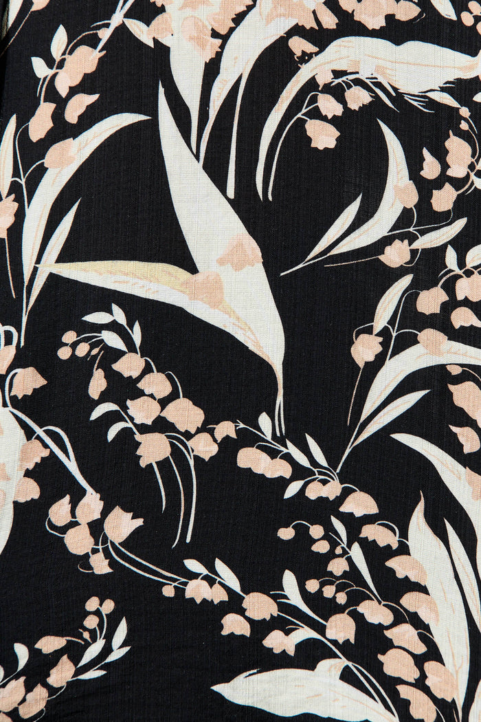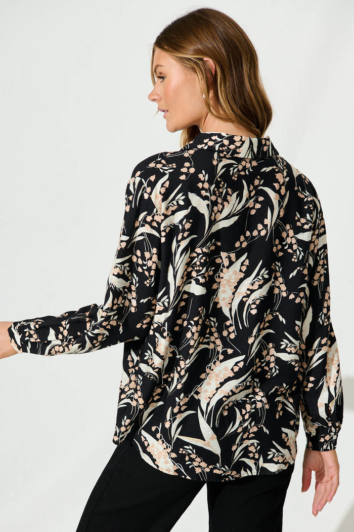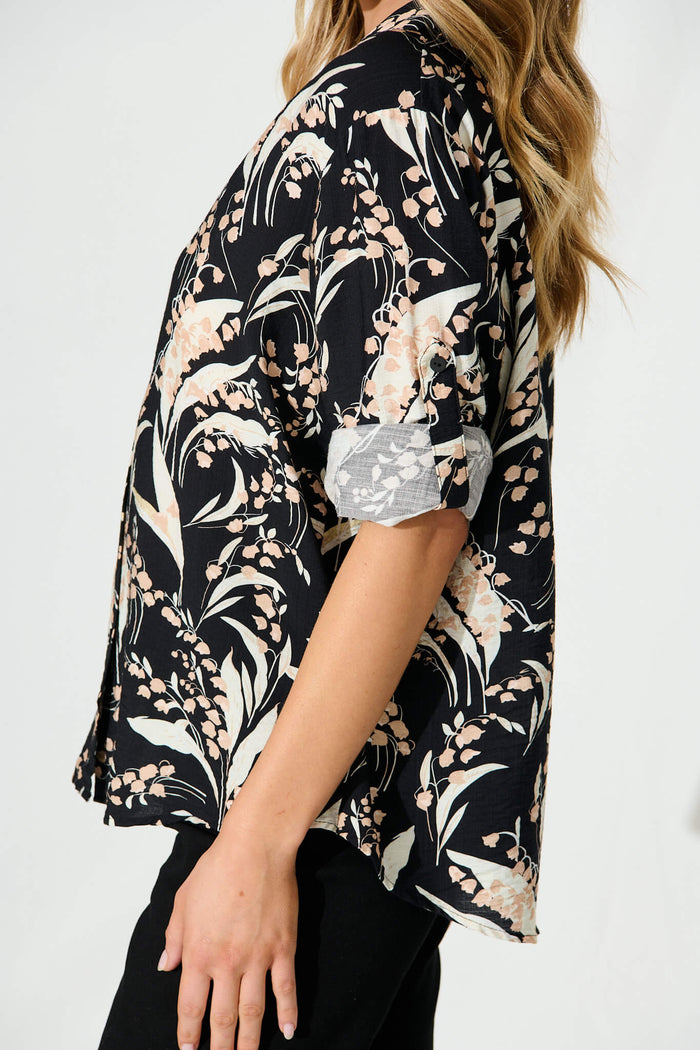 Anika Shirt In Black With Cream Leaf Cotton Blend