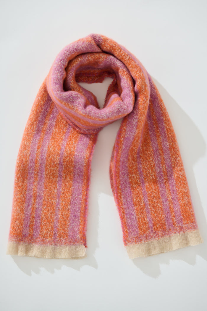 Anita Knit Scarf in Pink and Tangerine Stripe