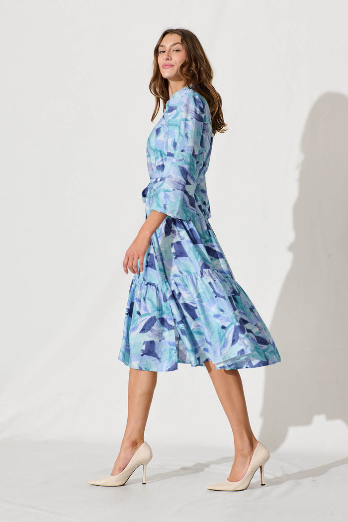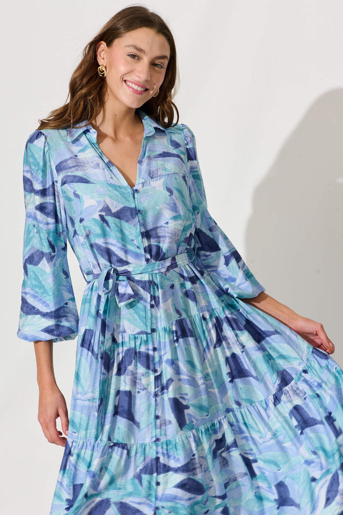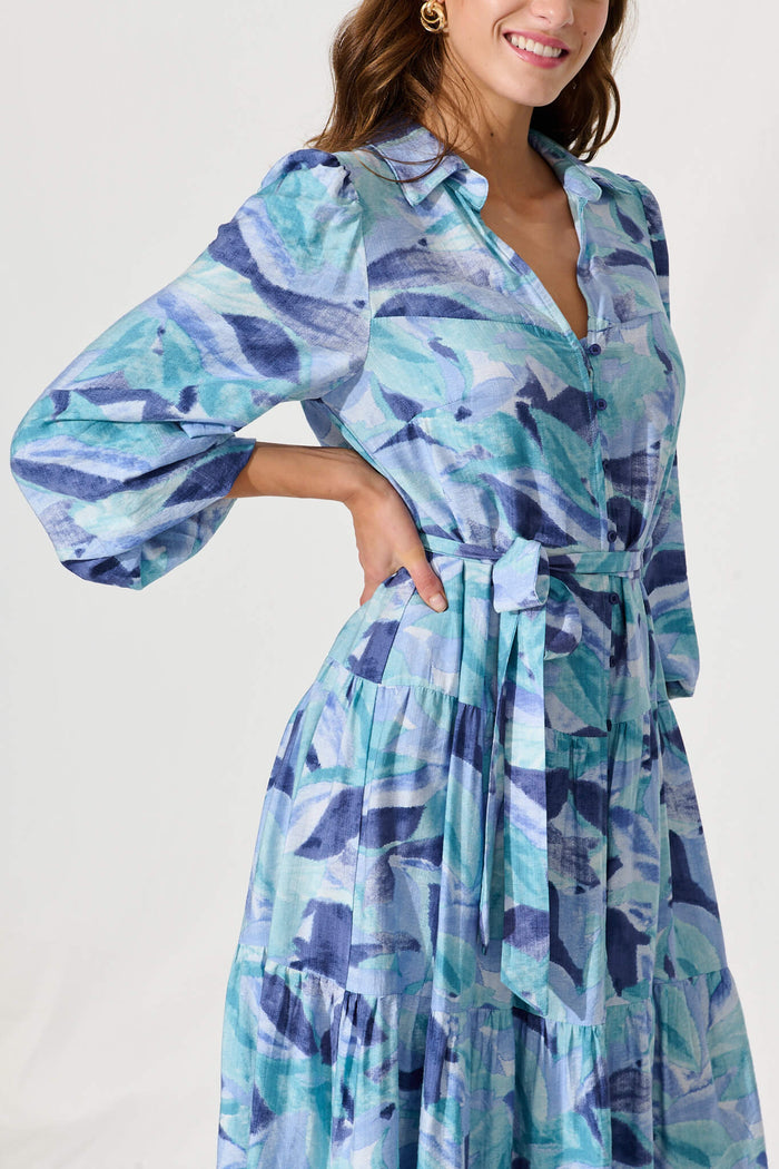 Anita Midi Shirt Dress In Blue With Green Cotton Blend