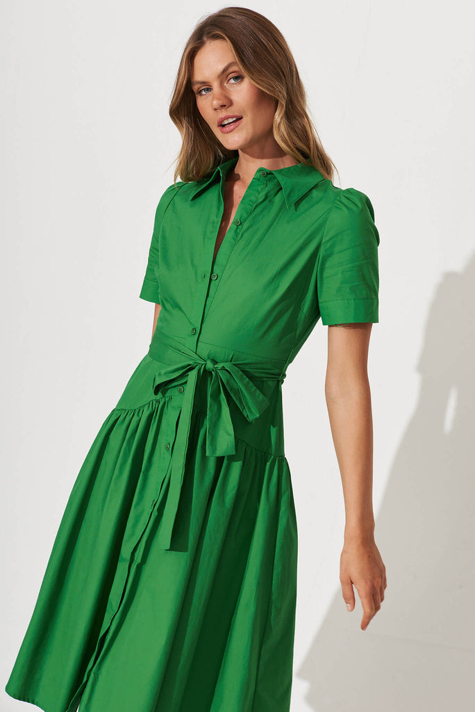 Annmarie Midi Shirt Dress In Green Cotton