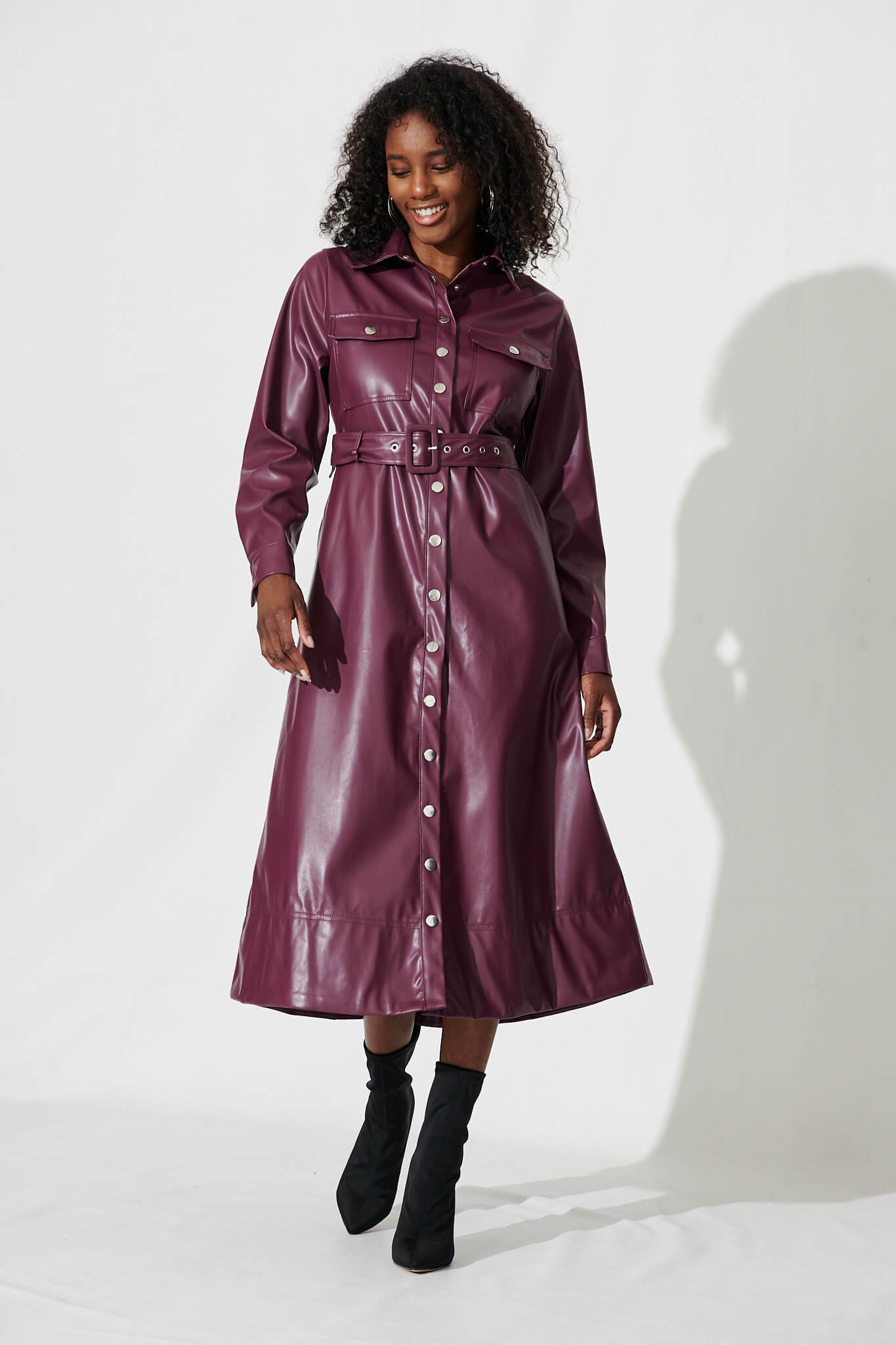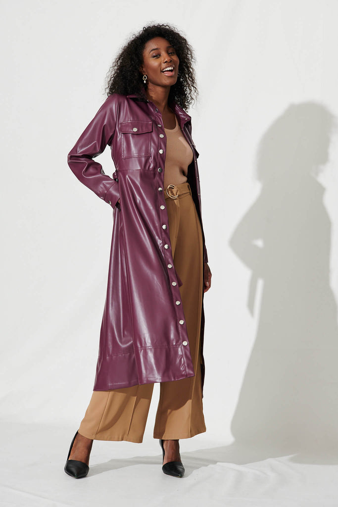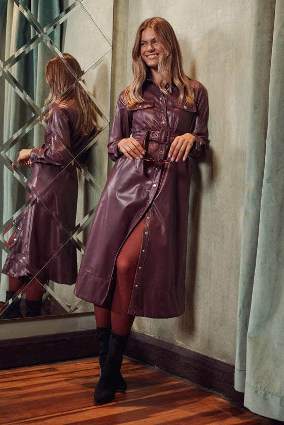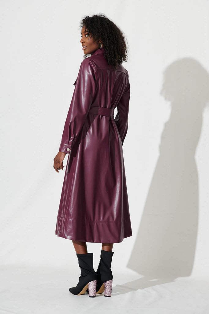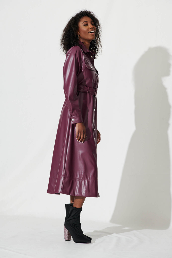 Antoinette Midi Shirt Dress In Plum Leatherette