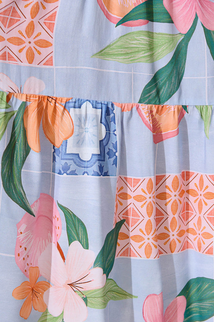 Apollonia Midi Dress in Blue with Multi Floral Print