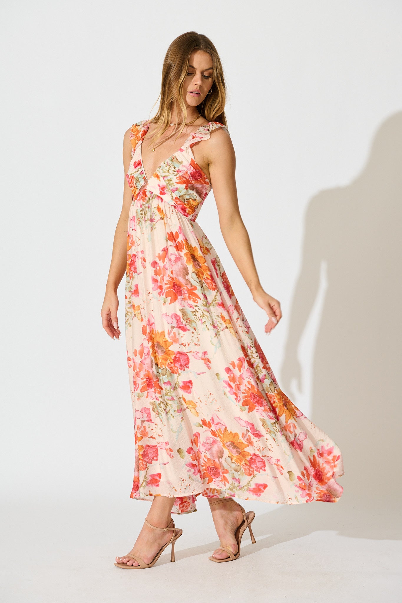 Apryl Maxi Dress in Blush with Tangerine Floral