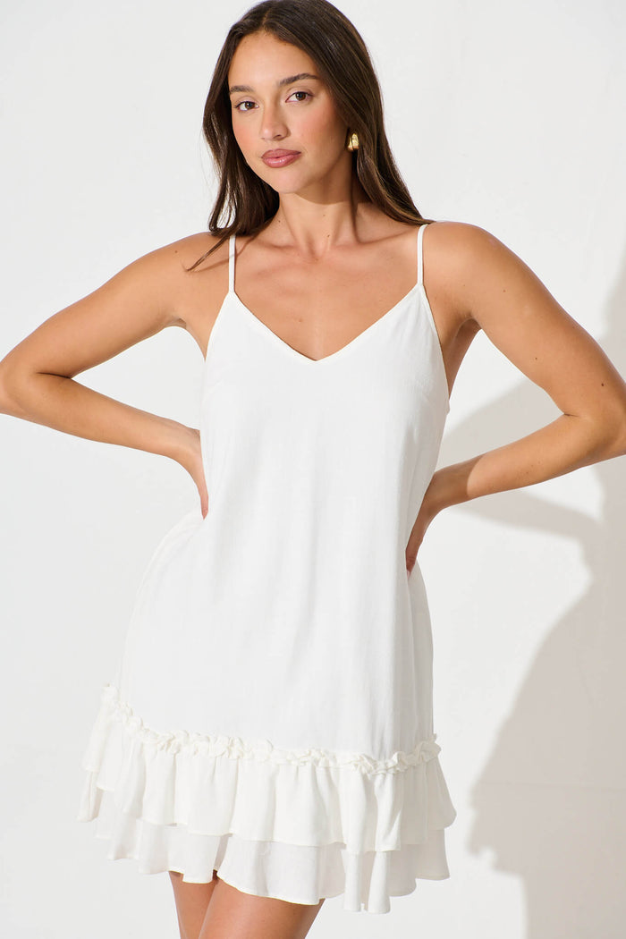 Aubrielle Dress In White Linen Blend