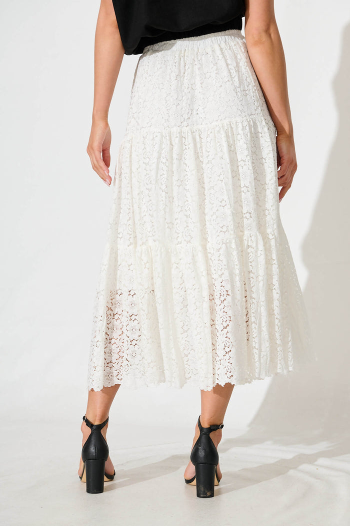 Meet our Augustus Midi Skirt! This must-have midi skirt pairs a sunshine-ready broderie design with lightweight, woven fabric. Lined for comfort and modesty, it falls in tiers and features an elastic waist for the perfect fit. Style with a simple camisole and sandals on sunny days.