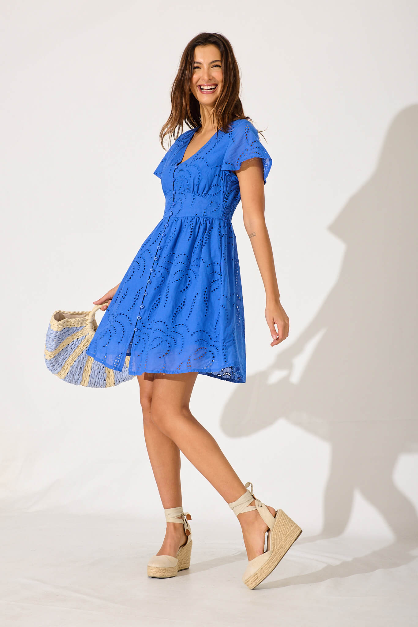 Aurelia Dress In Cobalt Blue Cotton Broderie