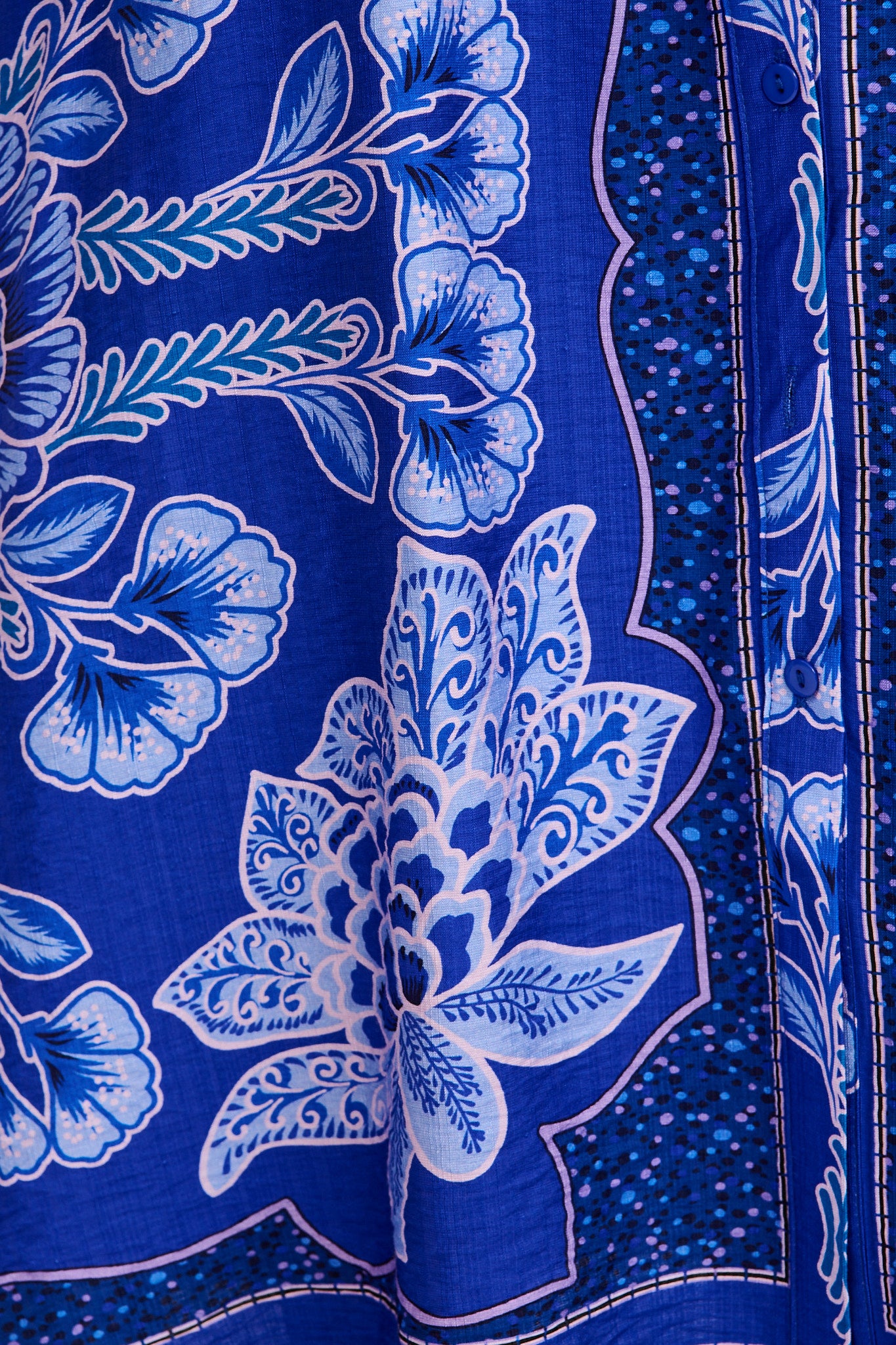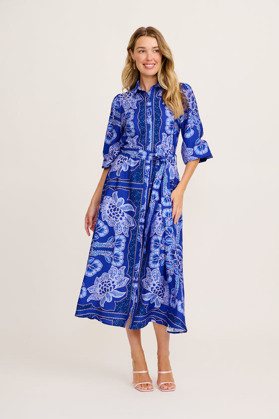 Aurelina Maxi Shirt Dress in Blue Floral Print Linen Blend