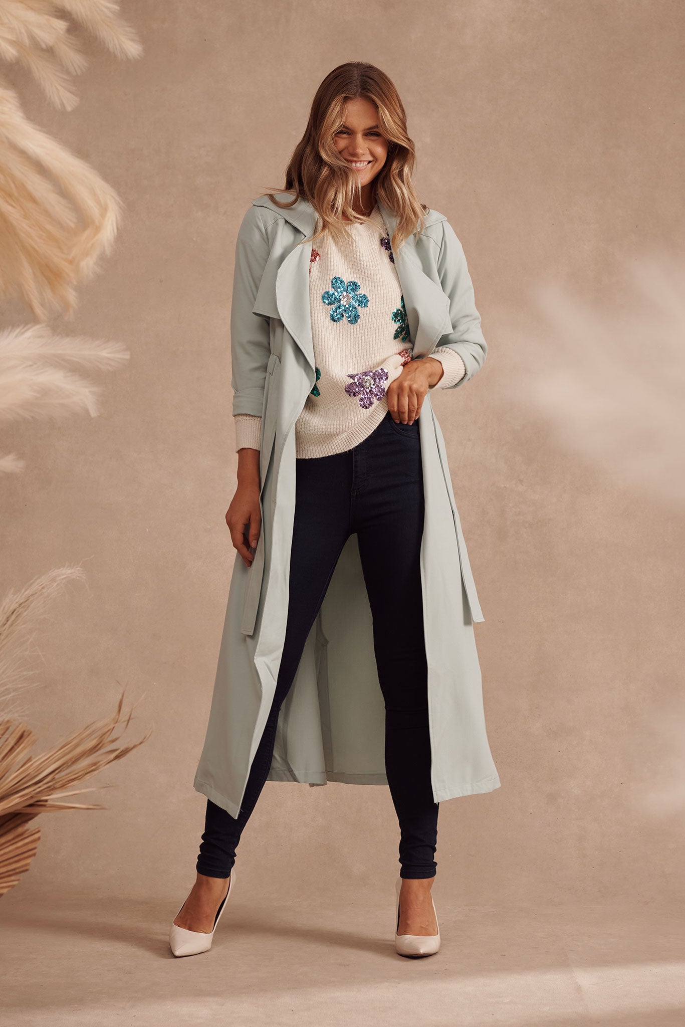We can't get enough of this trench coat! If you're looking for a piece you'll be wearing all season long, then our Avelana Trench coat is the one! ! This timeless trench is a classic wardrobe staple suitable for all seasons! Featuring a wide collar & lapels, long sleeves, self-tie waist belt, elasticated back waistband, making this transeasonal trench your go-to for days & nights out alike!