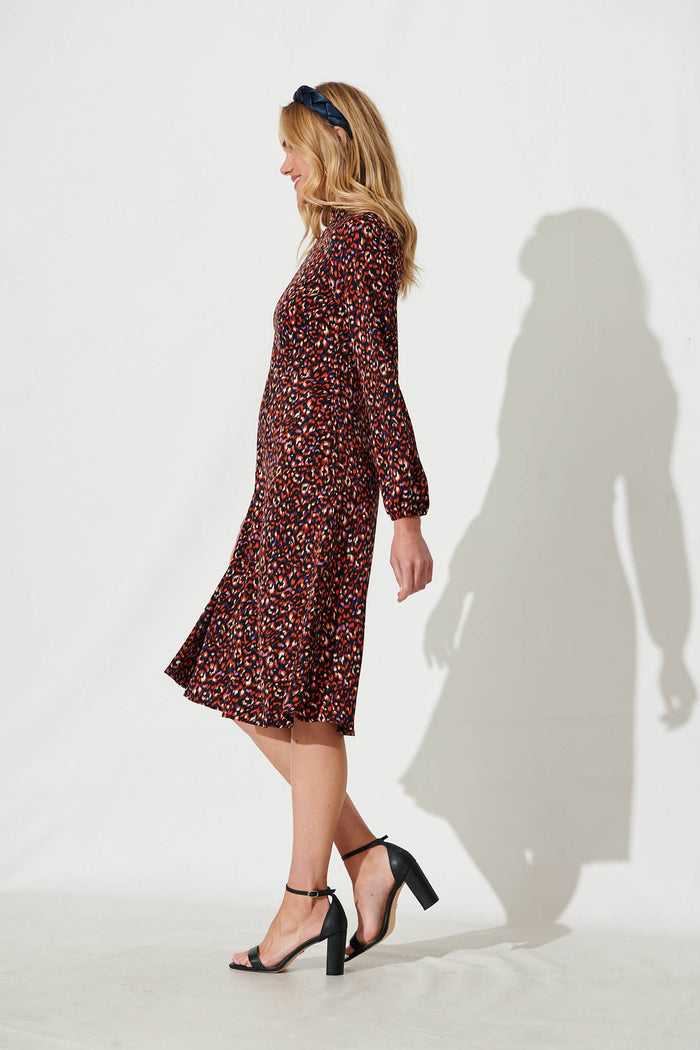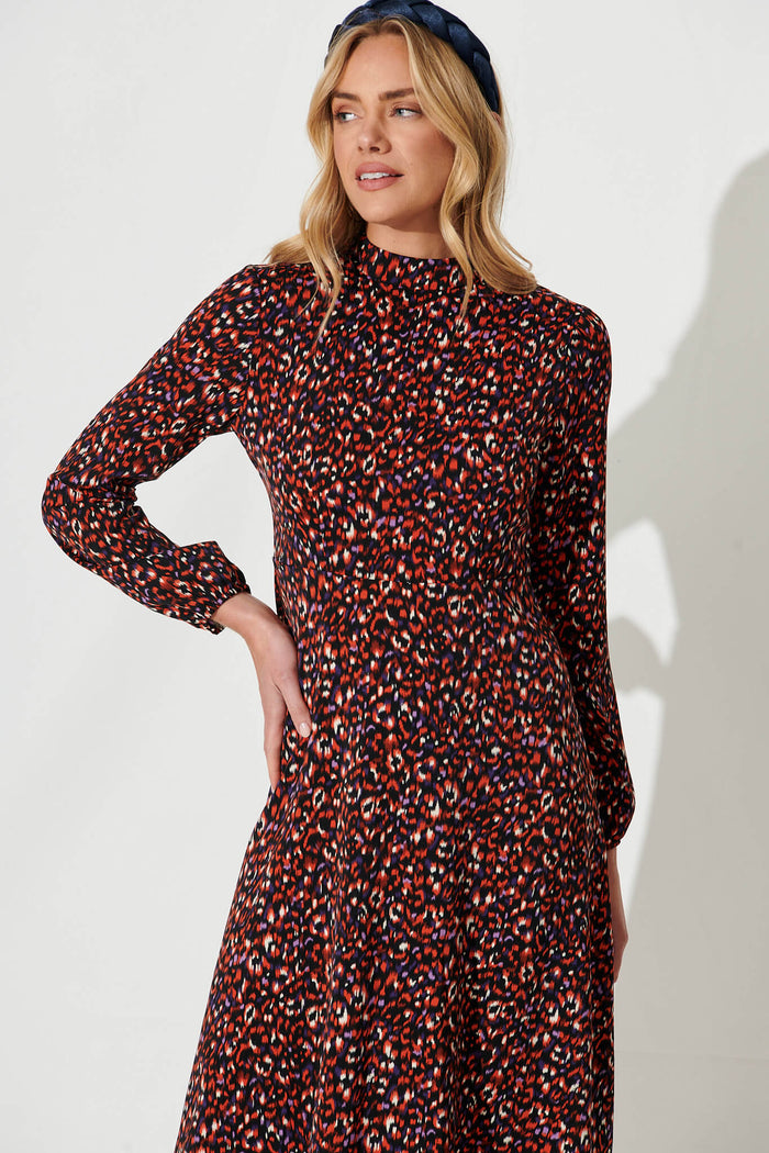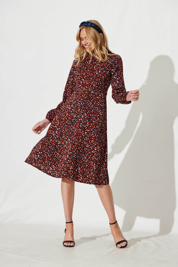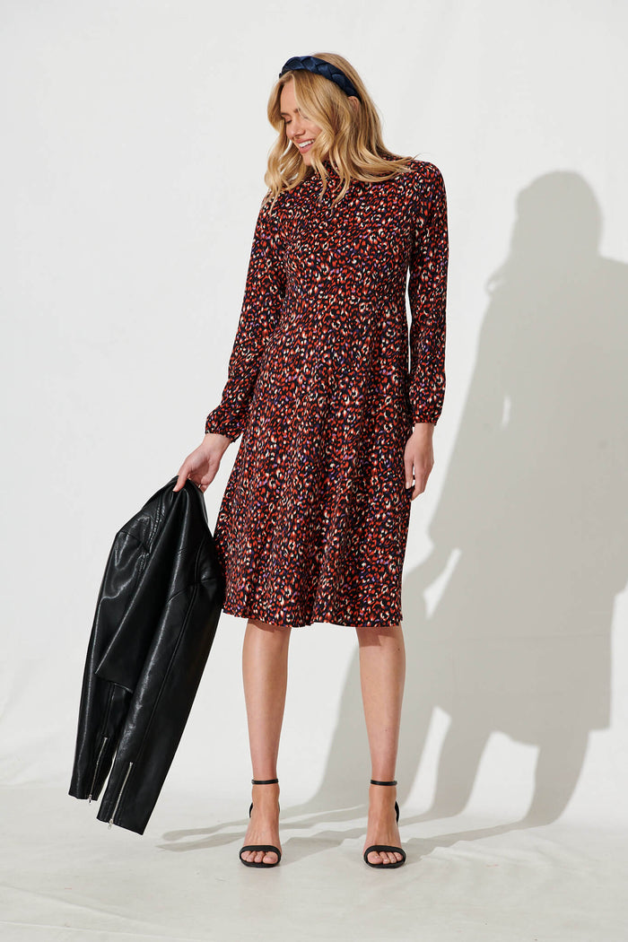 Make a statement this season with our Avila Midi Dress. Designed to stand out, this dress features a bold overall print, mid length skirt and high neckline for that timeless silhouette! Style it up with your go-to platform heels, gold accessories and denim jacket for an effortless look!