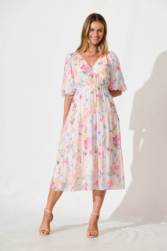 Baltimore Midi Dress in Pastel Watercolour Floral