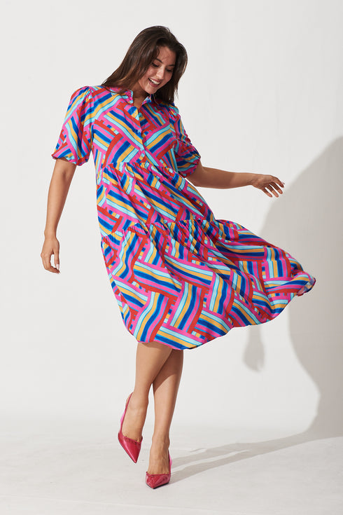 Beadlow Midi Smock Dress In Multi Geometric Print