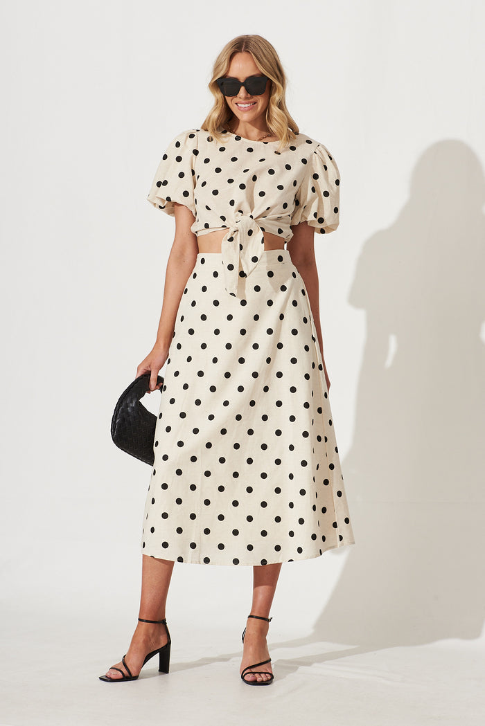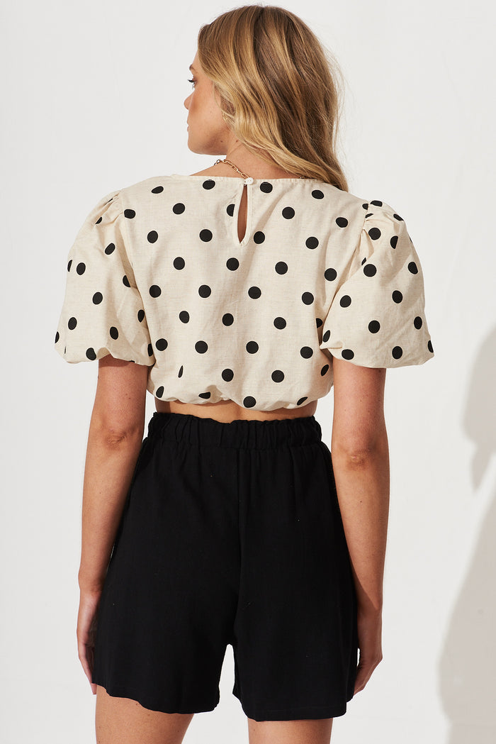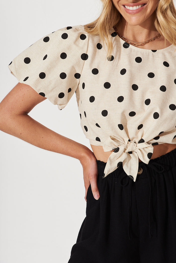 Bell Top In Oatmeal With Black Polka Dot Linen Blend
