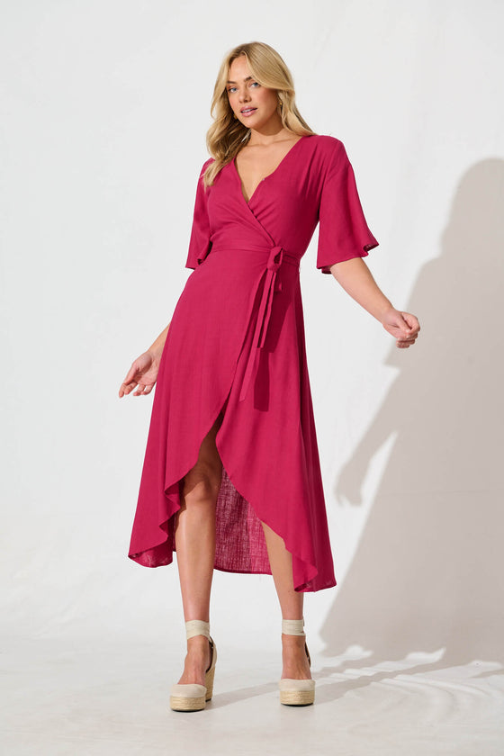 Bellerose Midi Wrap Dress In Raspberry Linen Blend