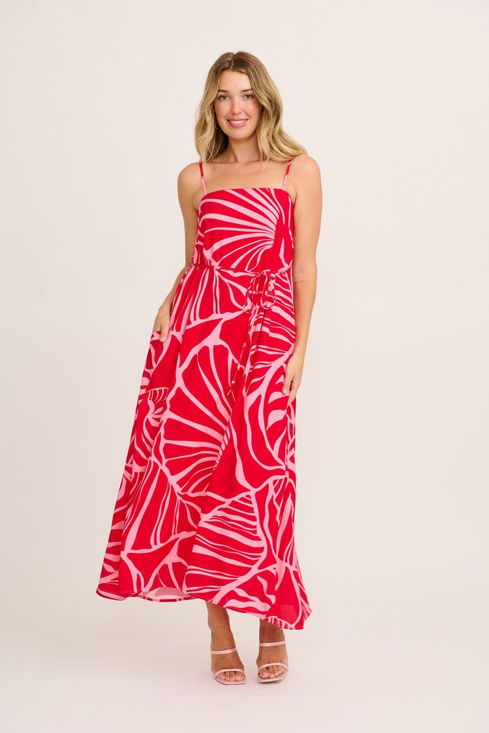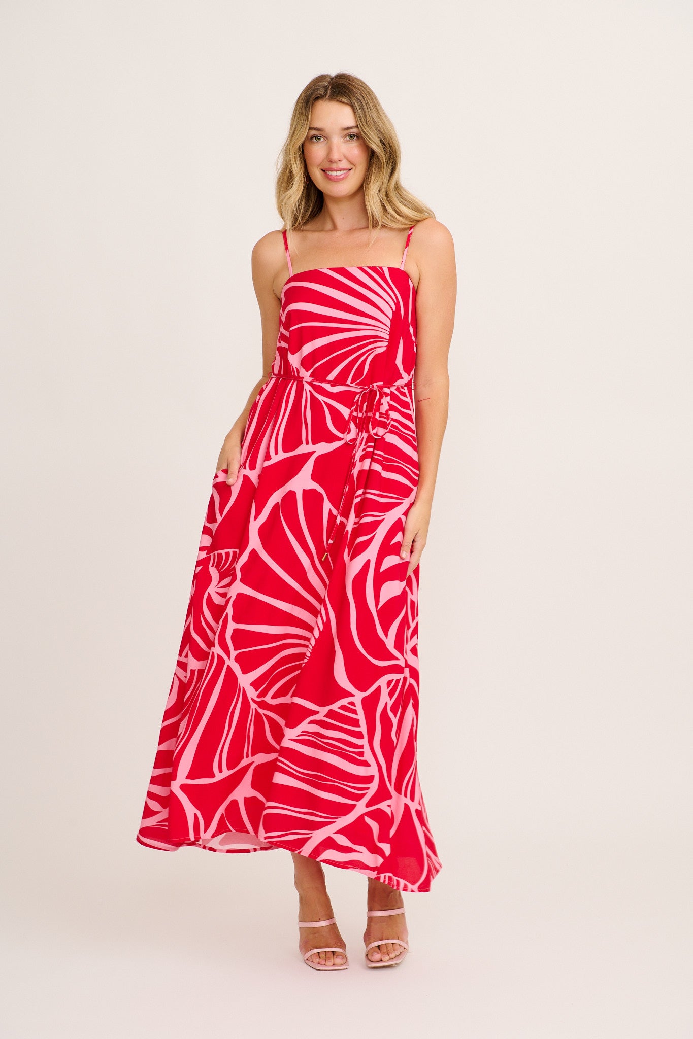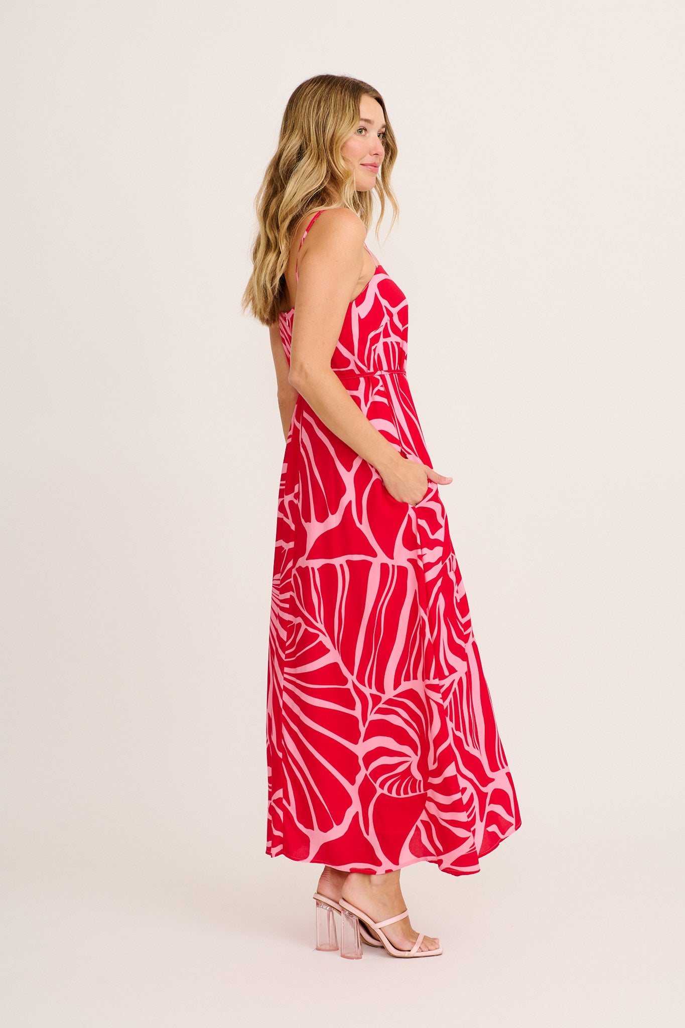 Sun-filled days and summer celebrations call for the Bellona Maxi Sundress in Red with Pink Print. Designed for warm weather dressing, this maxi sundress blends effortless style with thoughtful details that make it a joy to wear.