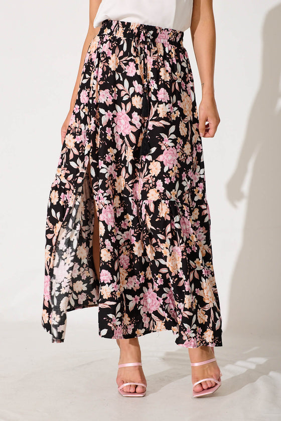 Bilboa Maxi Skirt In Black With Blush Multi Floral
