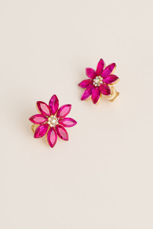 Bloom Clip On Earrings in Hot Pink Stones