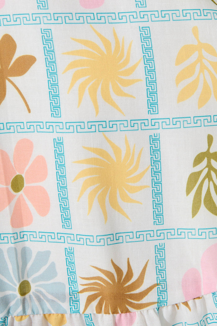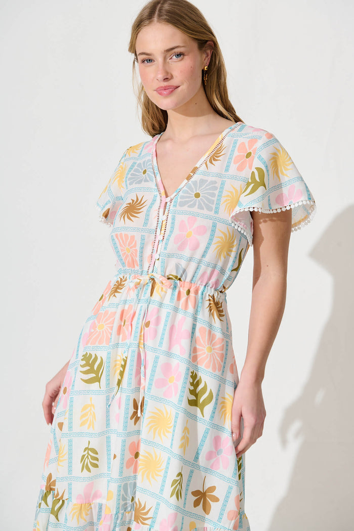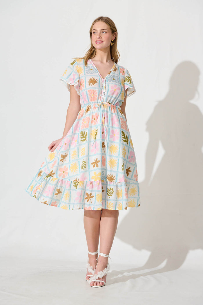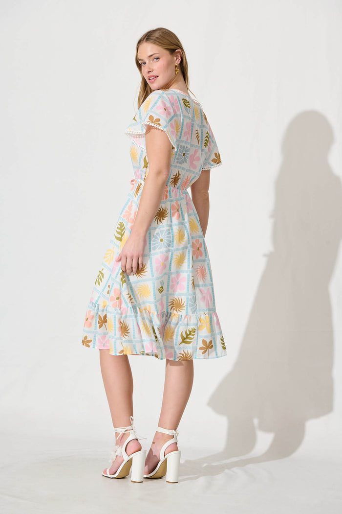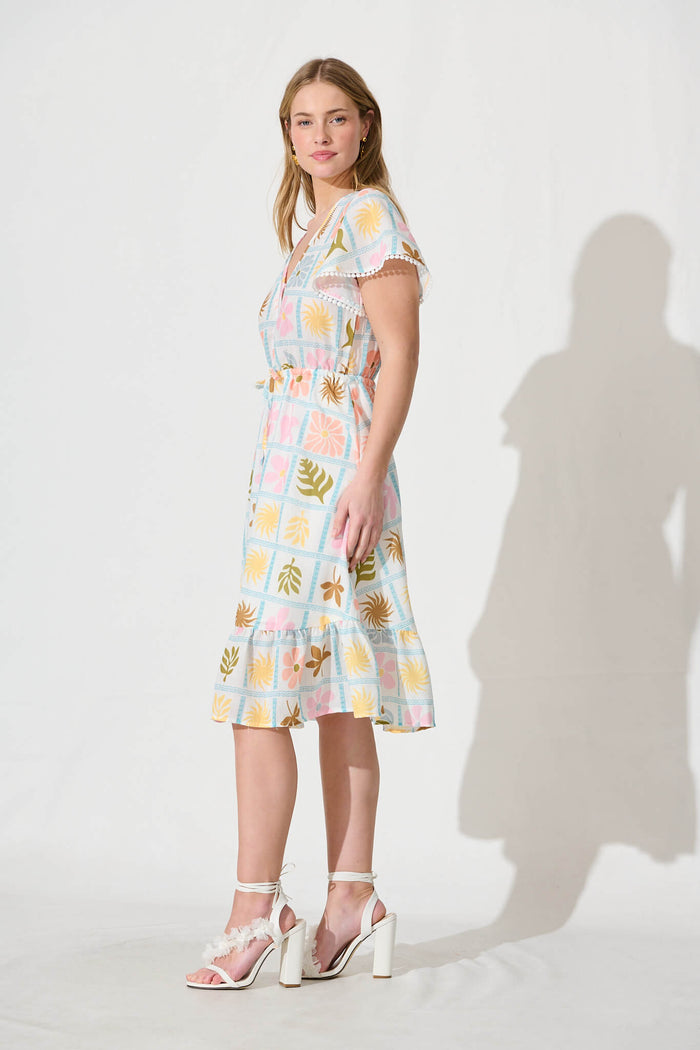 Blossomvale Midi Dress In Pastel Multi Print Linen Blend