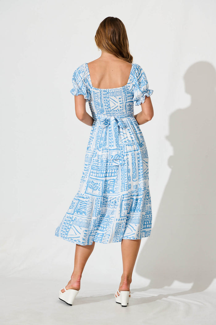Elevate your dress wardrobe with our Blythe Midi Dress this season. Made from a breathable fabric, featuring a flattering square neckline, pretty balloon sleeves and a gorgeous tie back waistline. Team with your go-to espadrilles for a chic look.