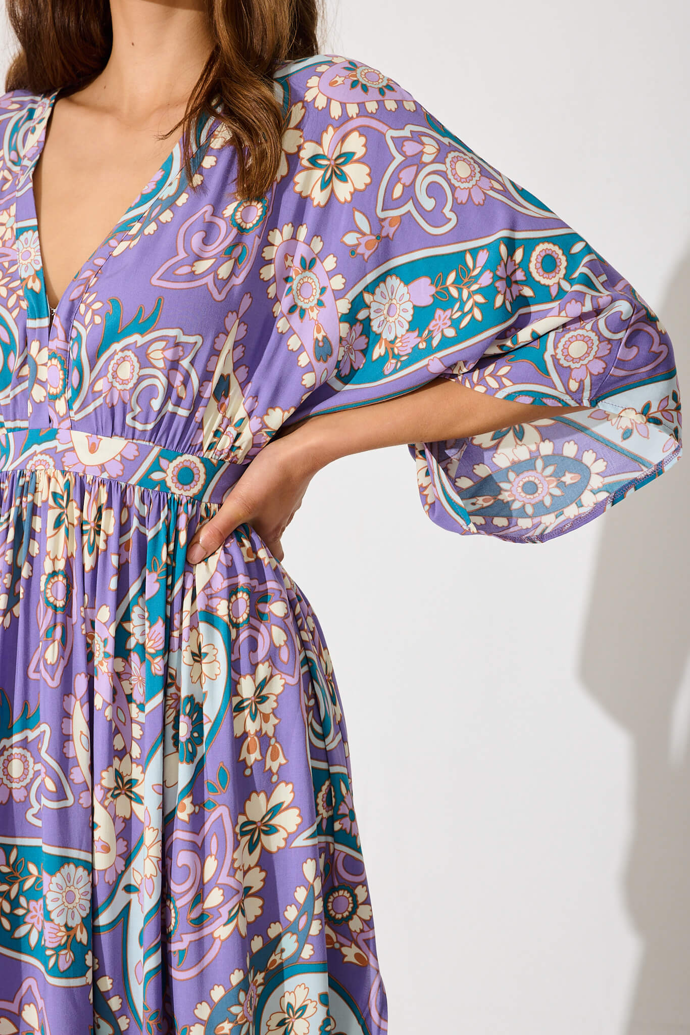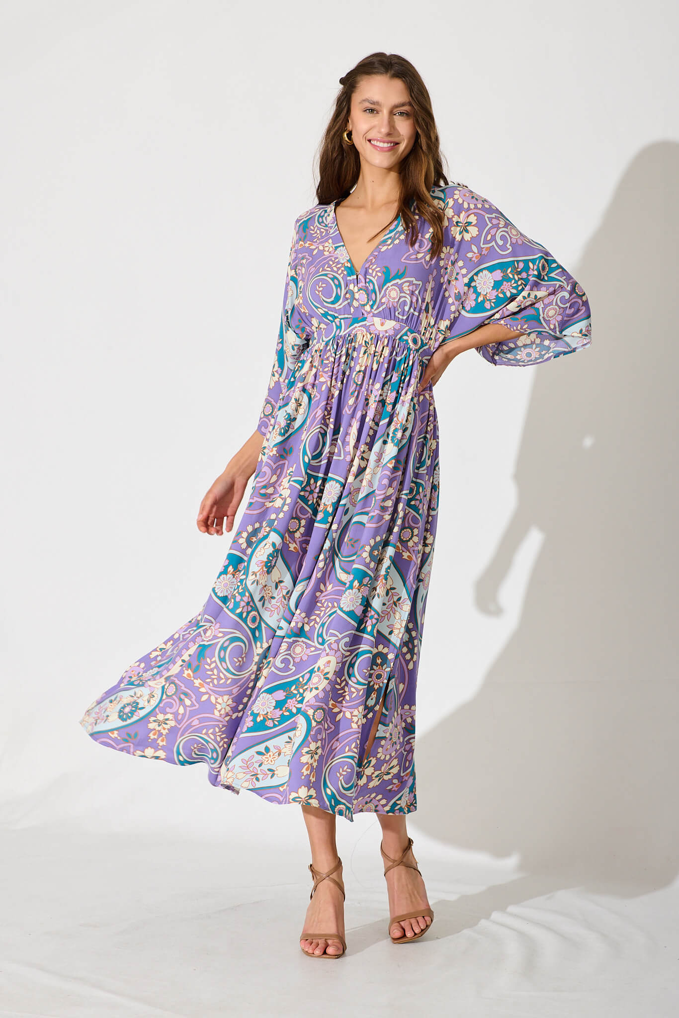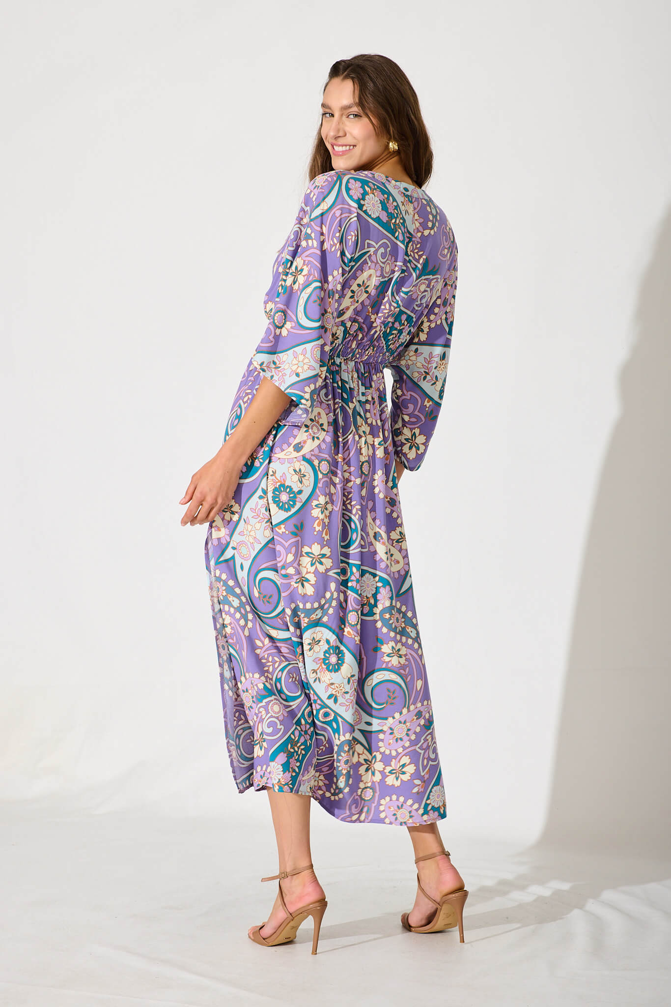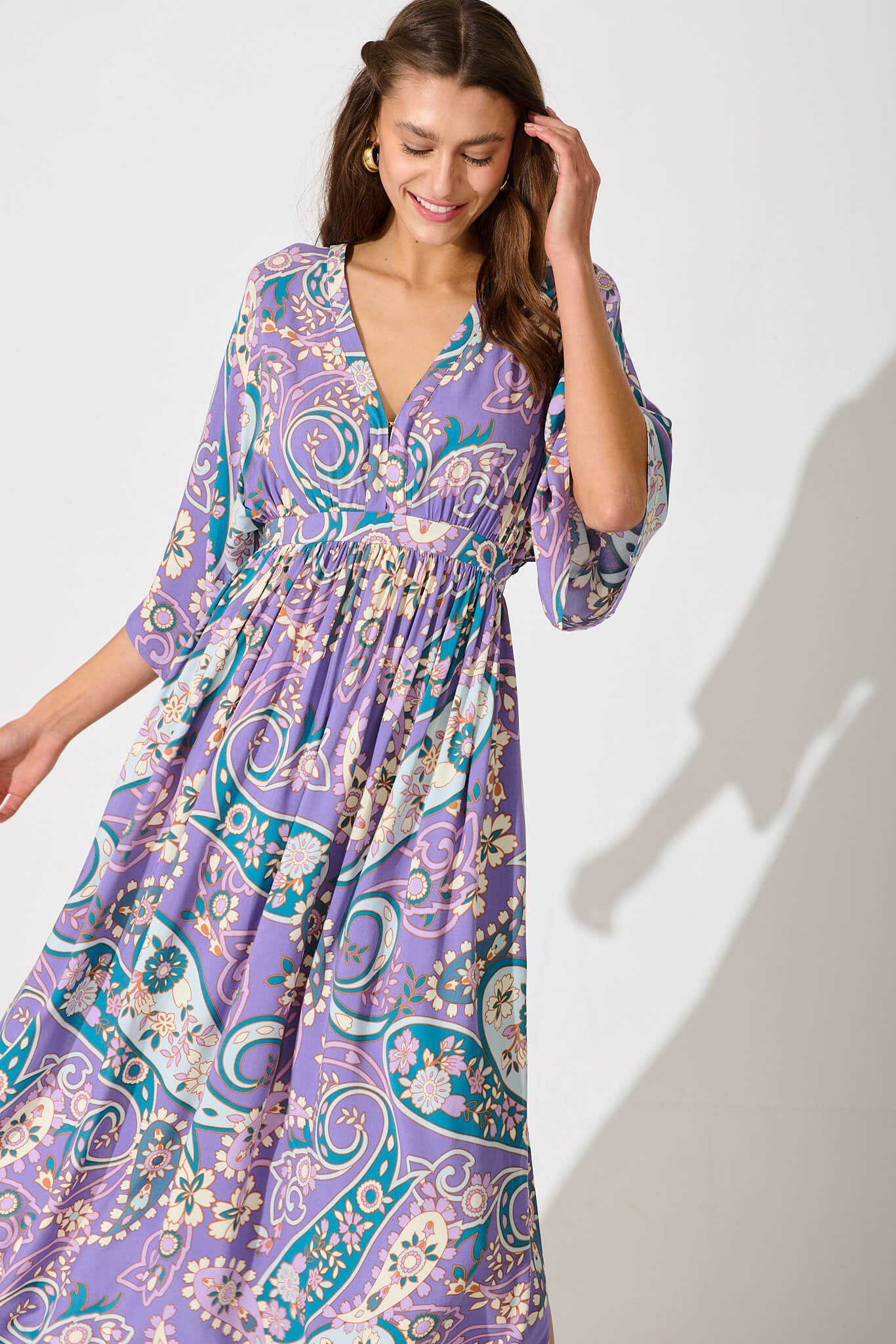 Break Free Maxi Dress In Purple With Blue Paisley Print