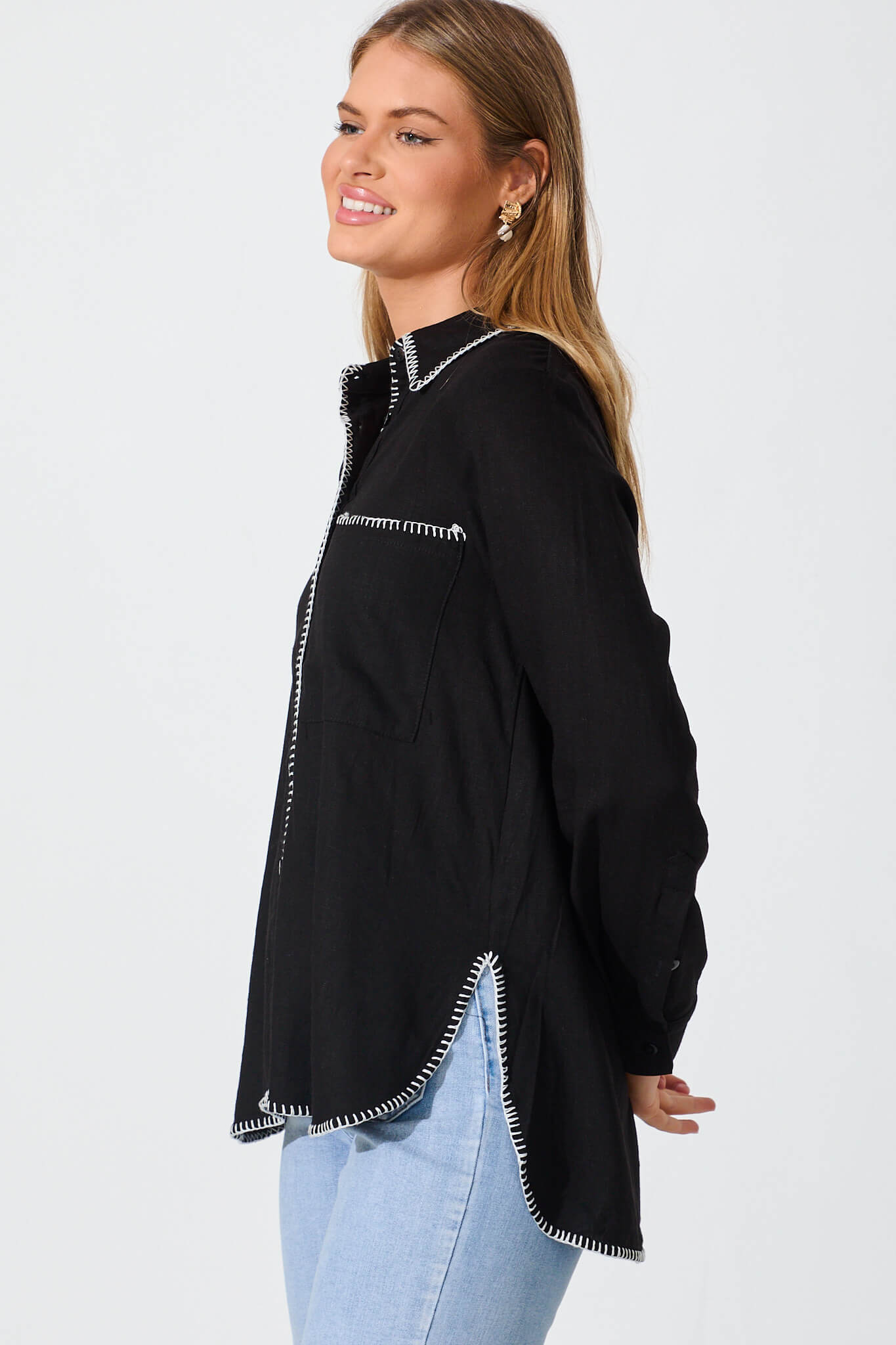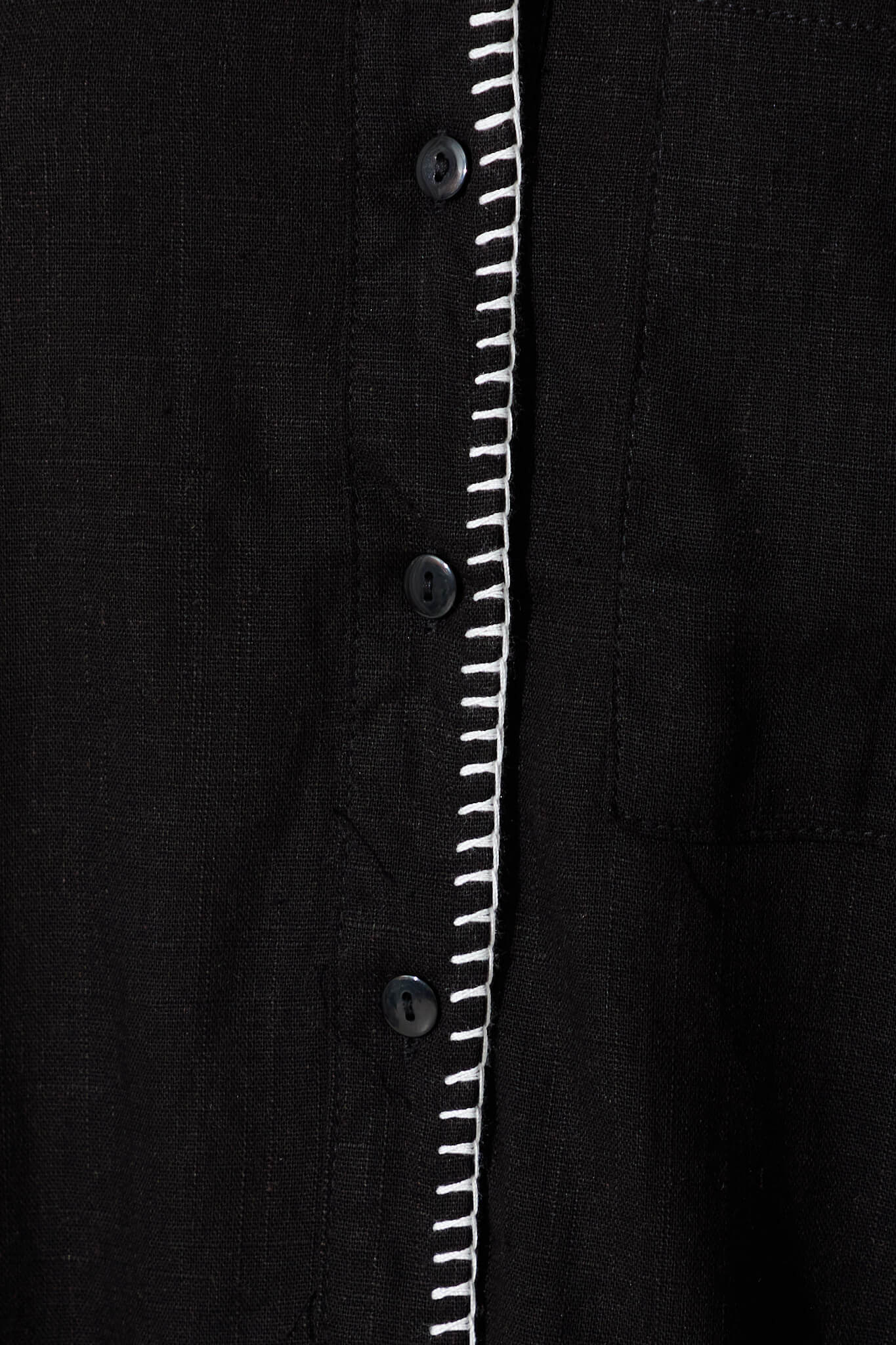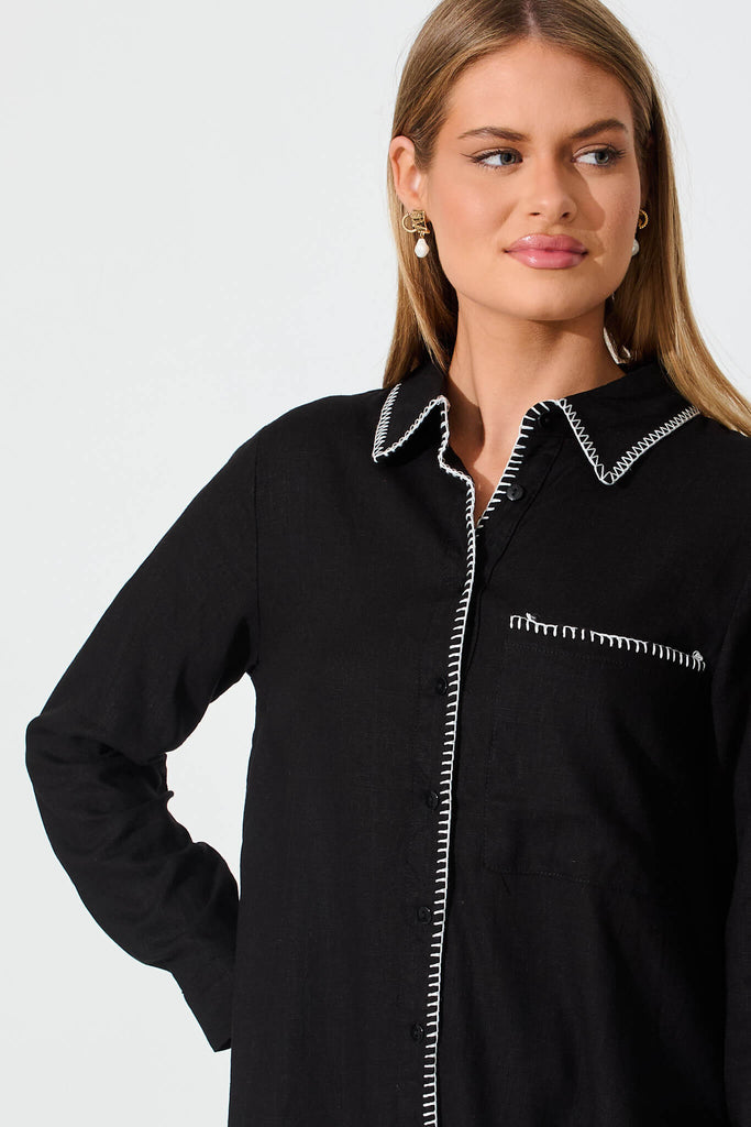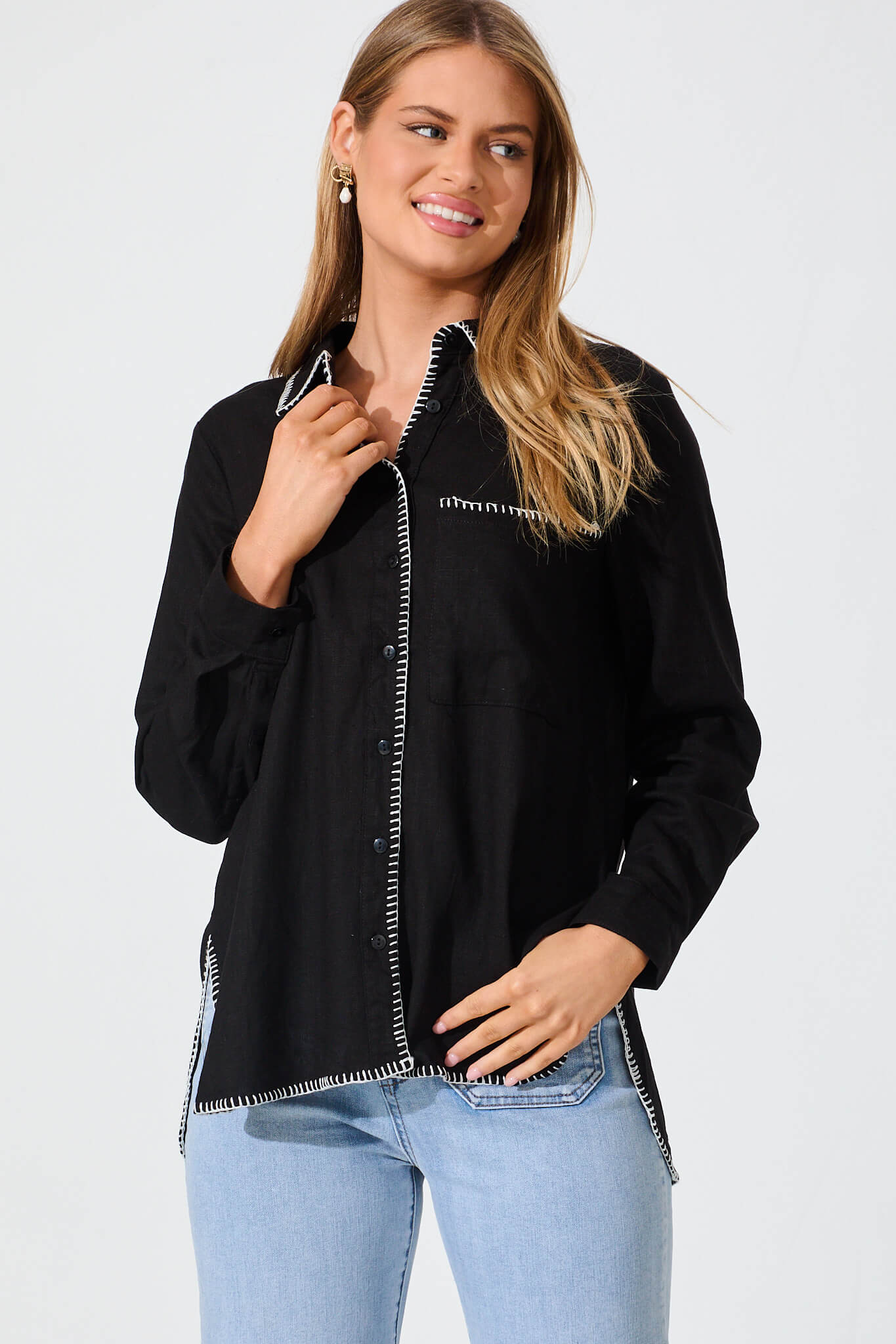 Brielle Shirt In Black With White Contrast Linen Cotton