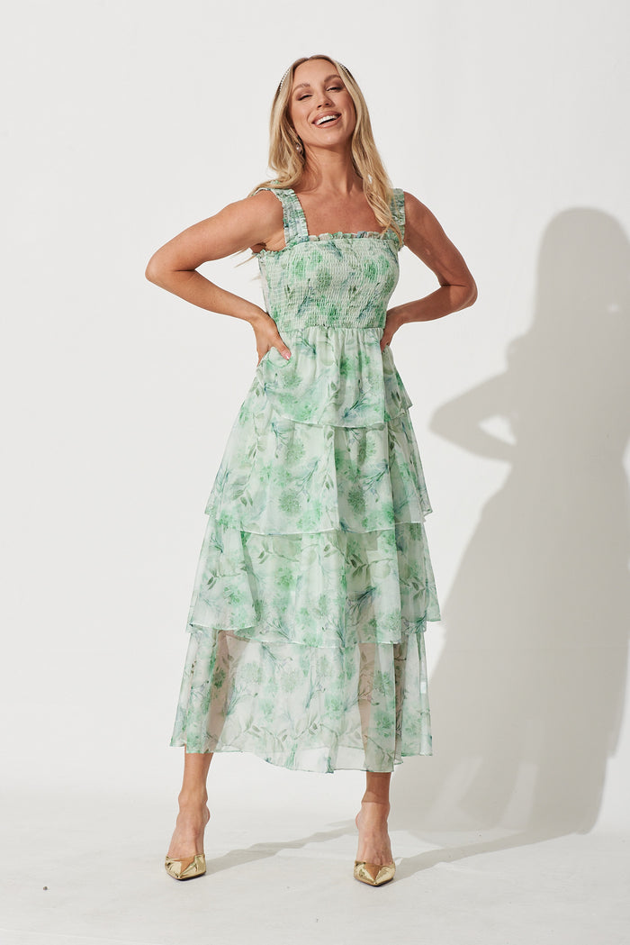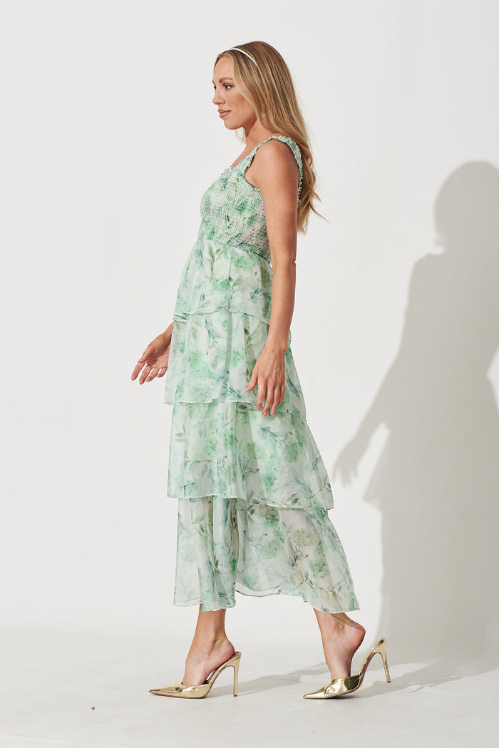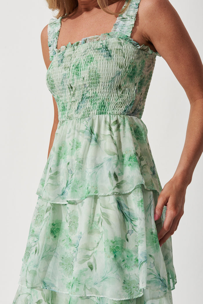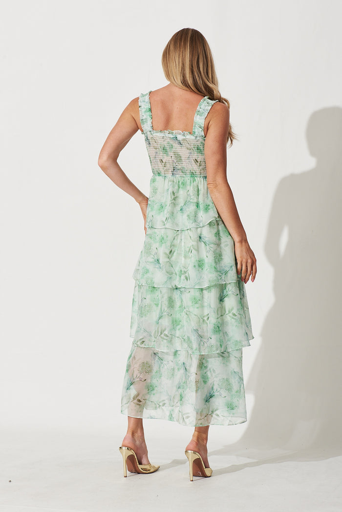 Briony Maxi Dress In Green Watercolour Floral Chiffon