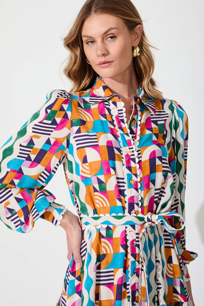 Cali Shirt Dress In Multi Print