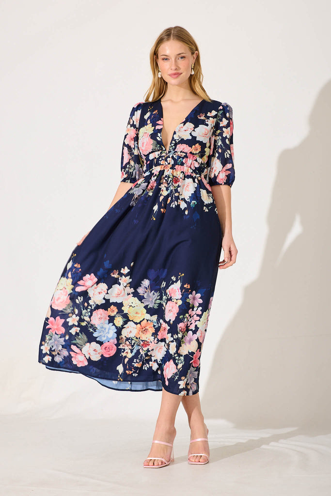 Camille Maxi Dress In Teal With Orange Floral