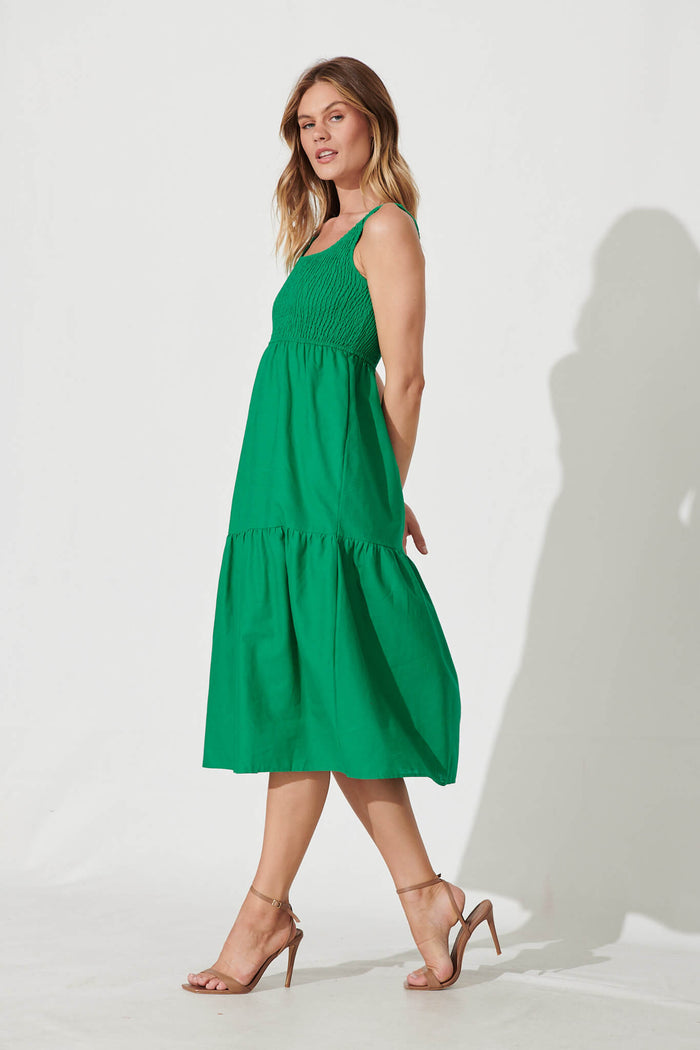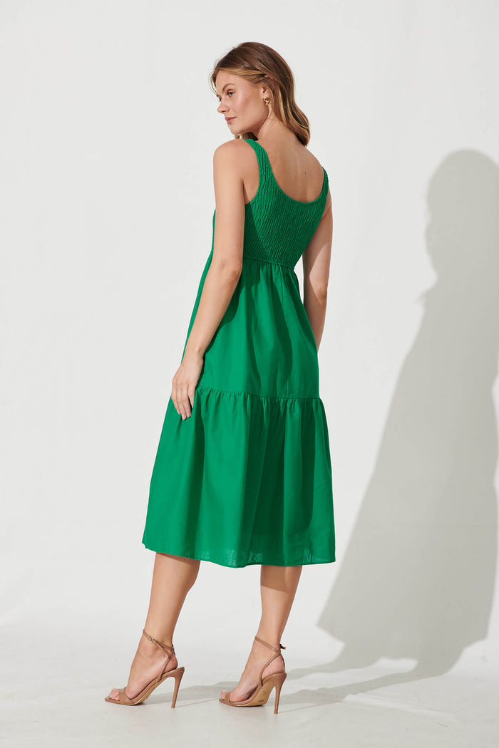 Caribbean Midi Dress In Bright Green Cotton Linen