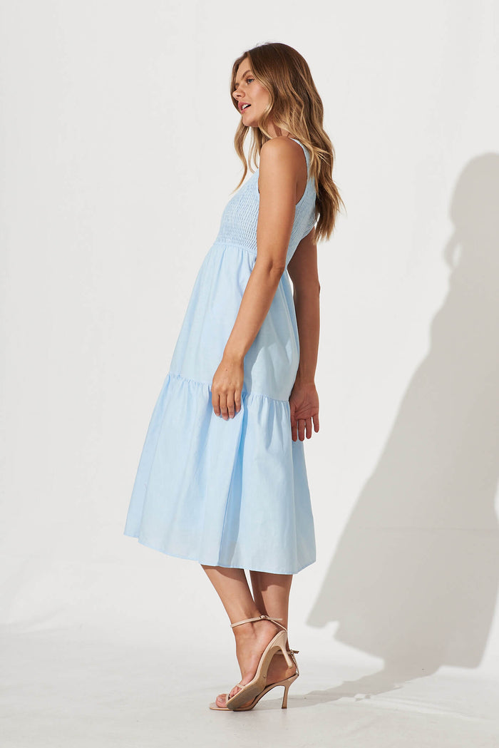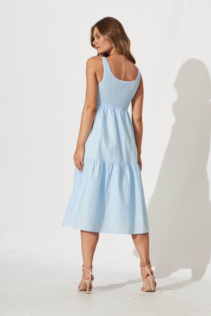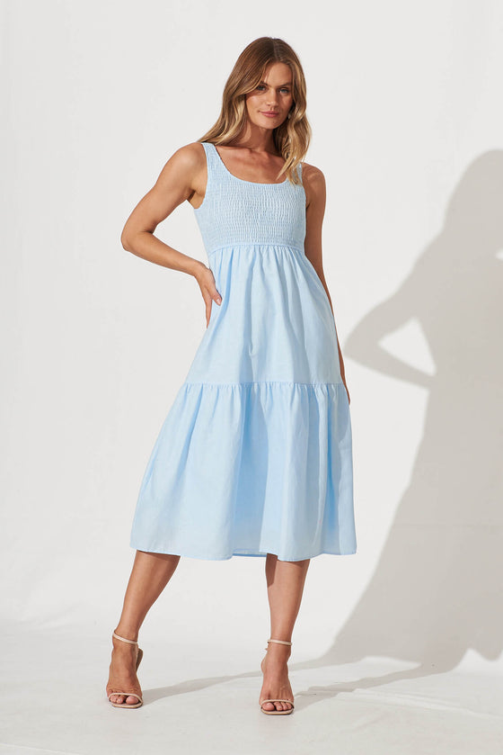 Caribbean Midi Dress In Pale Blue Cotton Linen