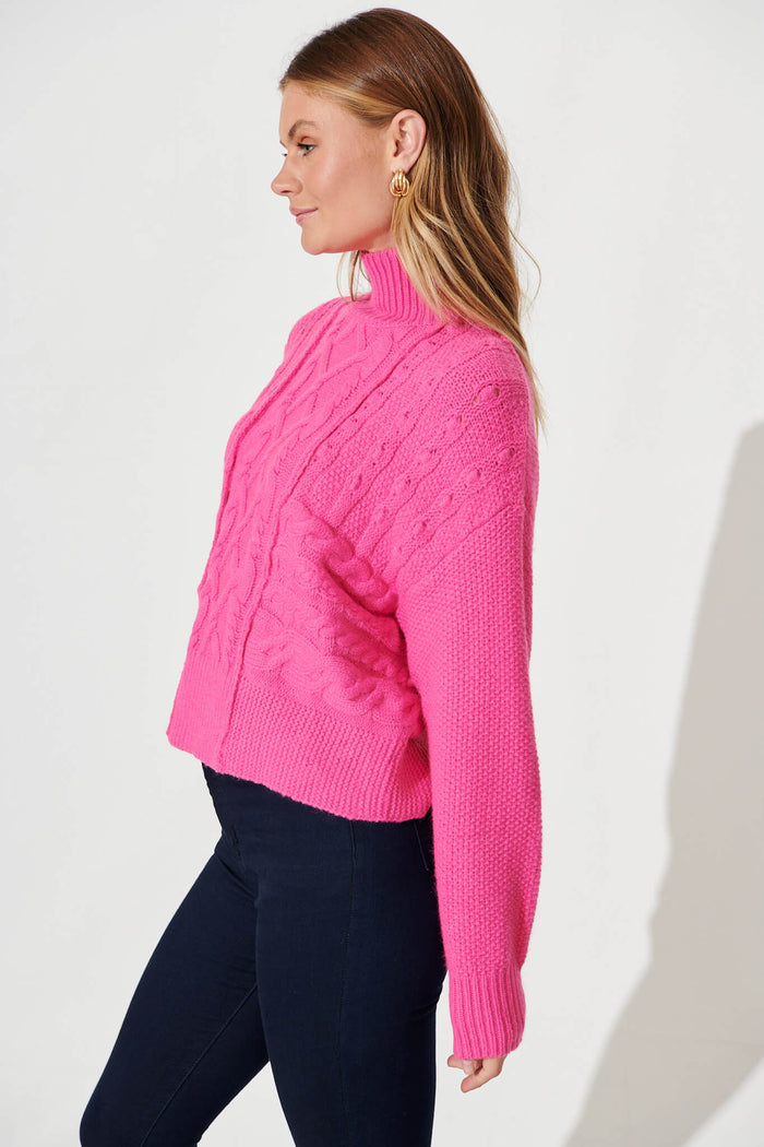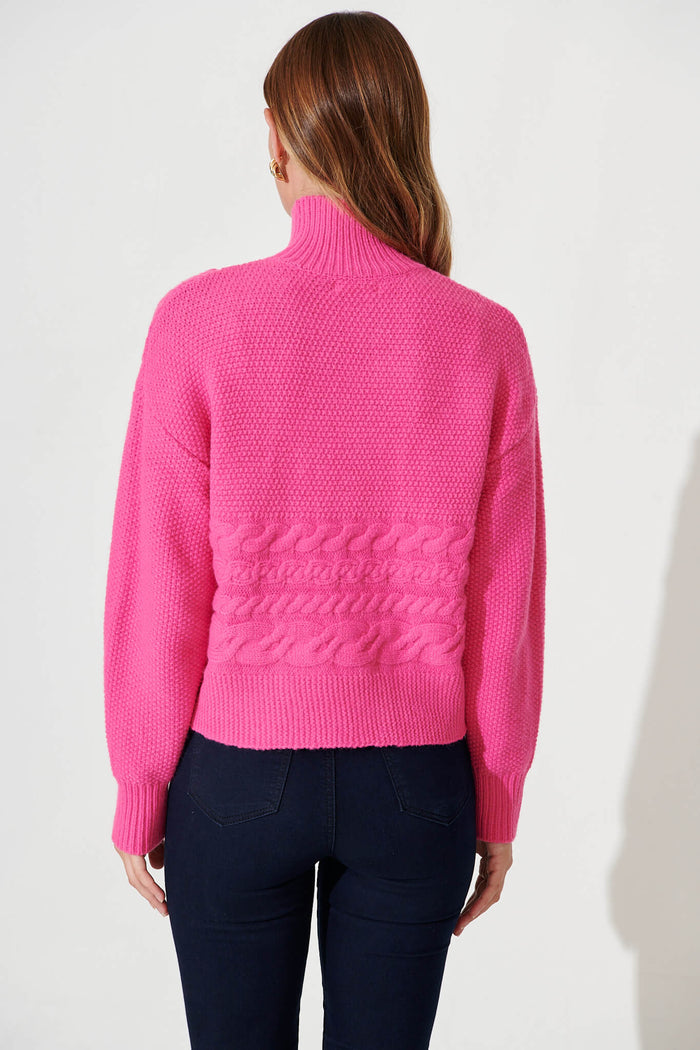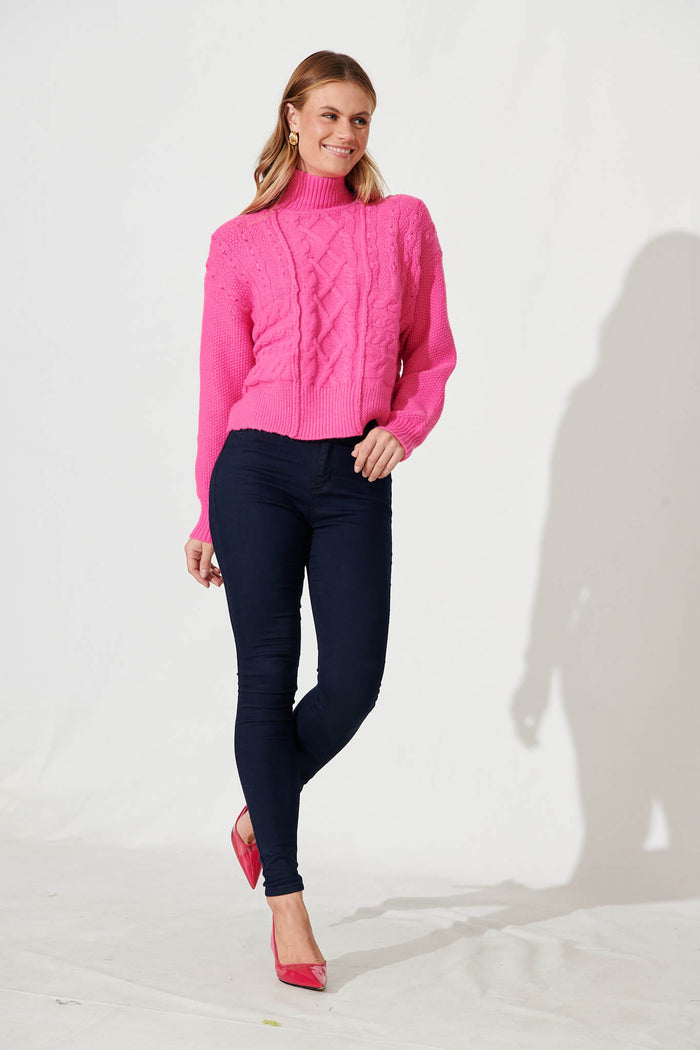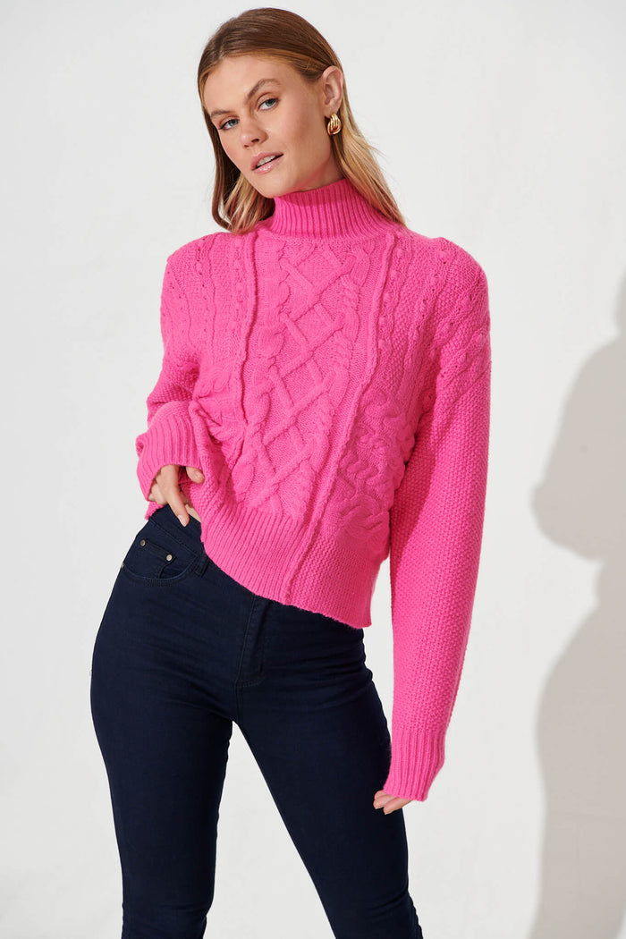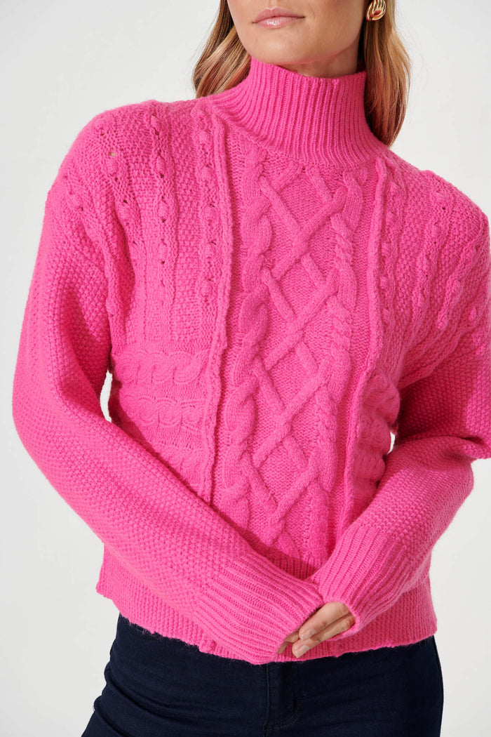 Channel those winter vibes in our Carino Knit! Its slouchy fit, cable knit and high neck make it the perfect knit for those extra cold mornings! Style with skinny jeans and a chunky knit scarf for a cute but cosy look!