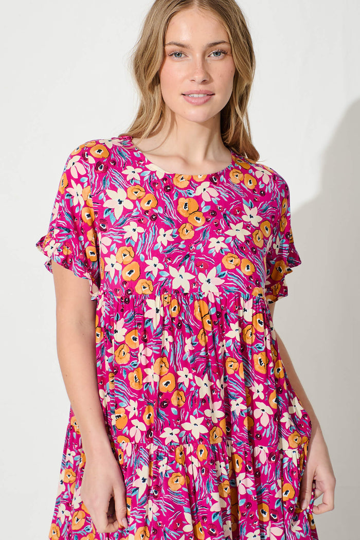 Carisse Smock Dress in Fuchsia With Multi Floral